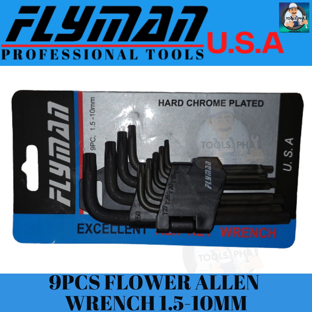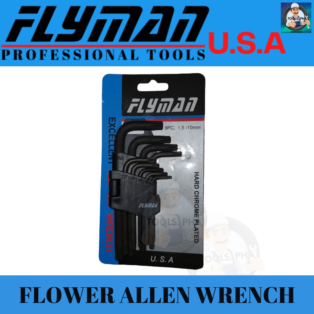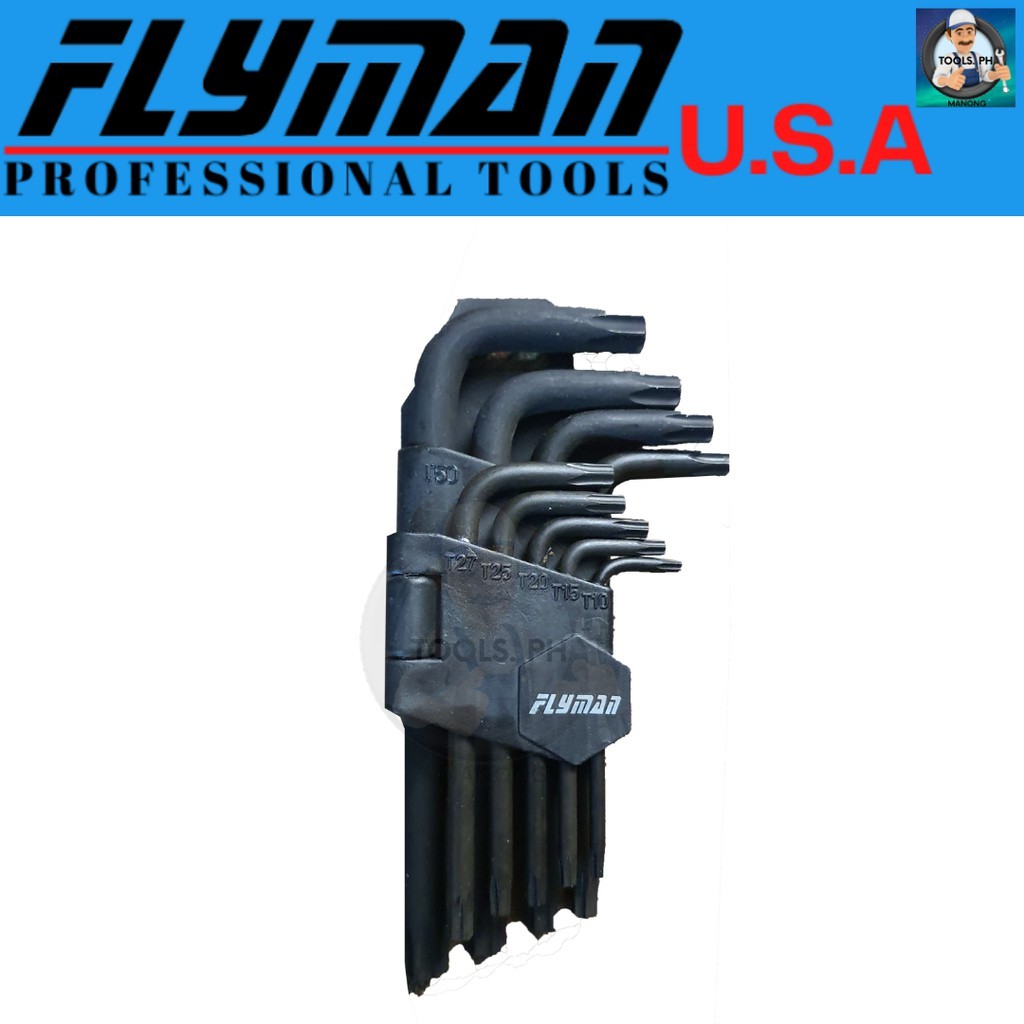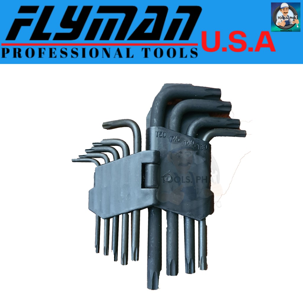 Flyman 9Pcs Star Allen wrench 1.5-10Mm Small Torx Allen Wrench Carbon Black High Quality Tool