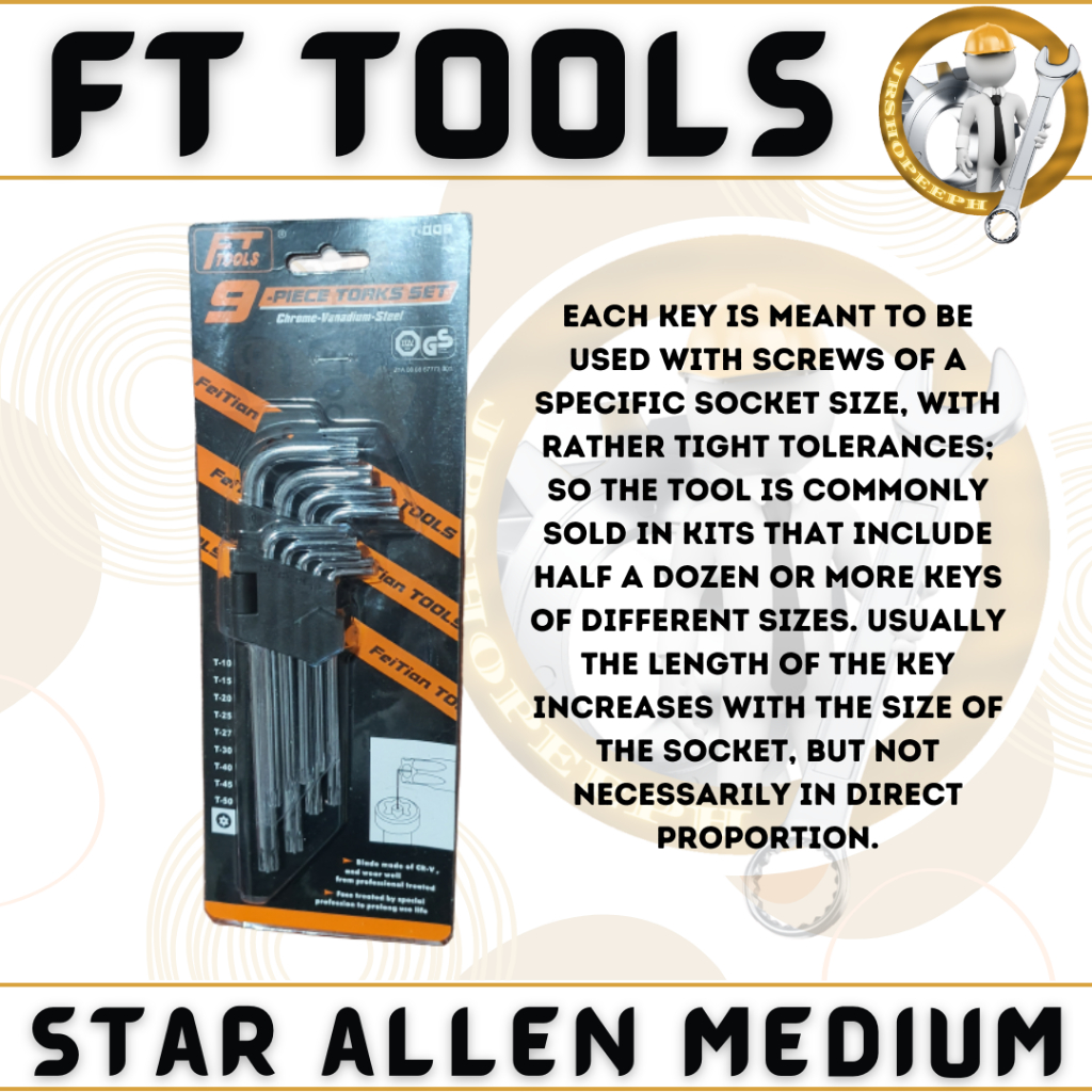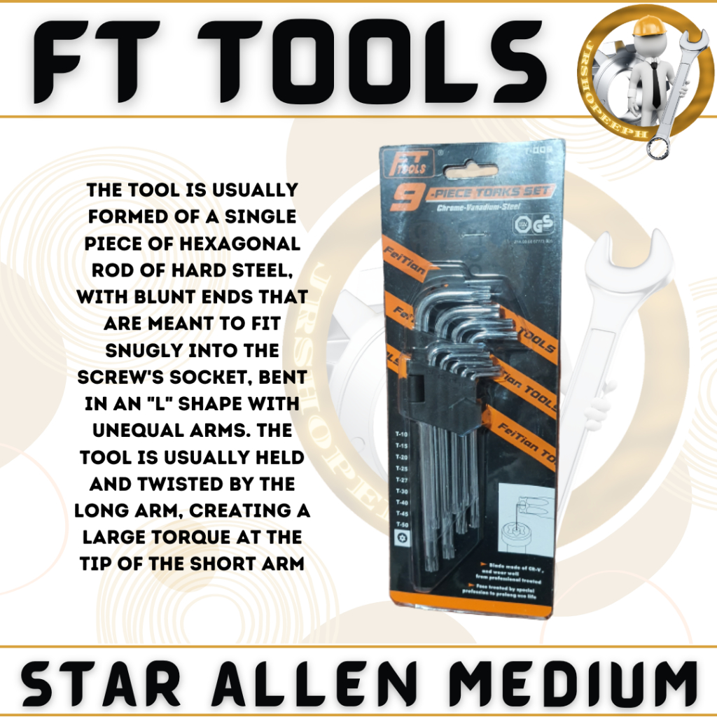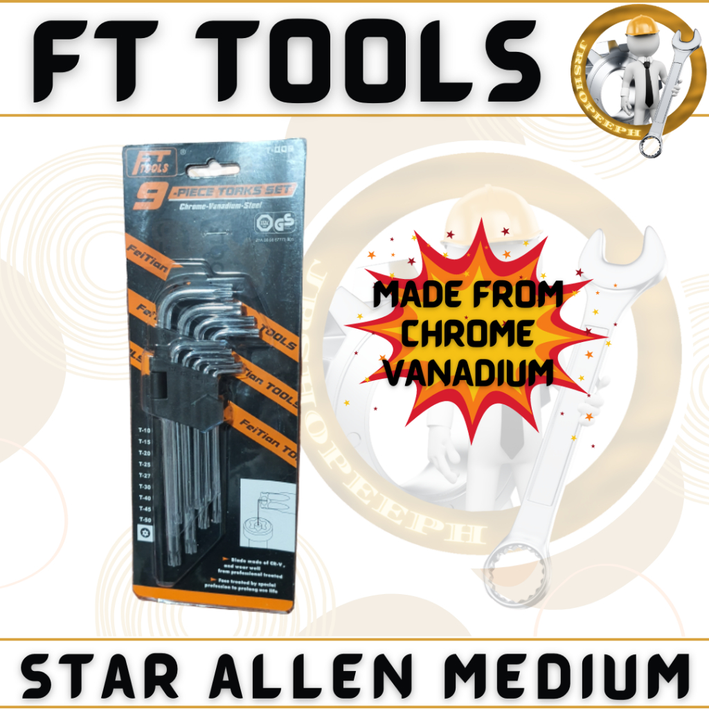 FT Star Allen Wrench Medium 3-9Mm Torx Allen Wrench Chrome High Quality Mechanics Tool