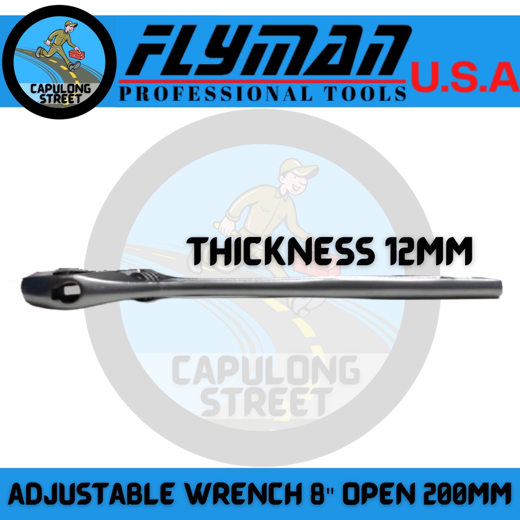 Flyman Adjustable Wrench 8" Yabe Katala Chrome Vanadium Steel Heavy Duty