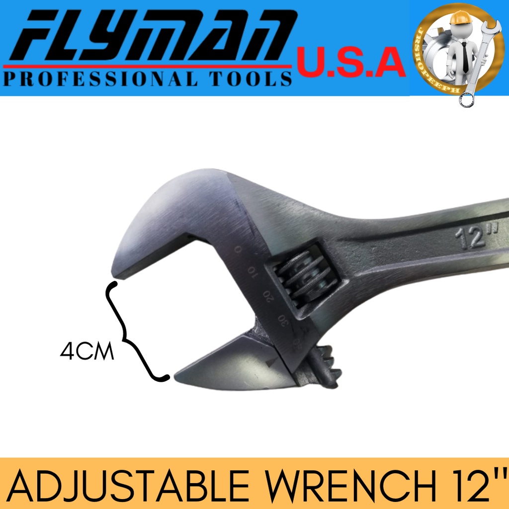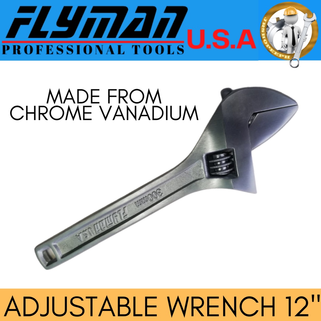 Flyman Adjustable Wrench Katala 12'' Made From Chrome Vanadium Steel Heavy Duty