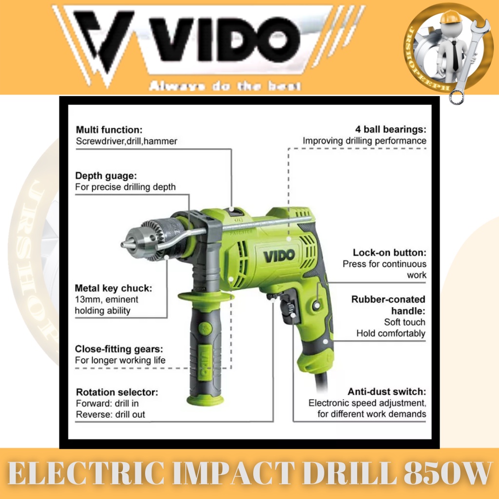 Vido Electric Impact drill 850watts Barena Carpenters power tool