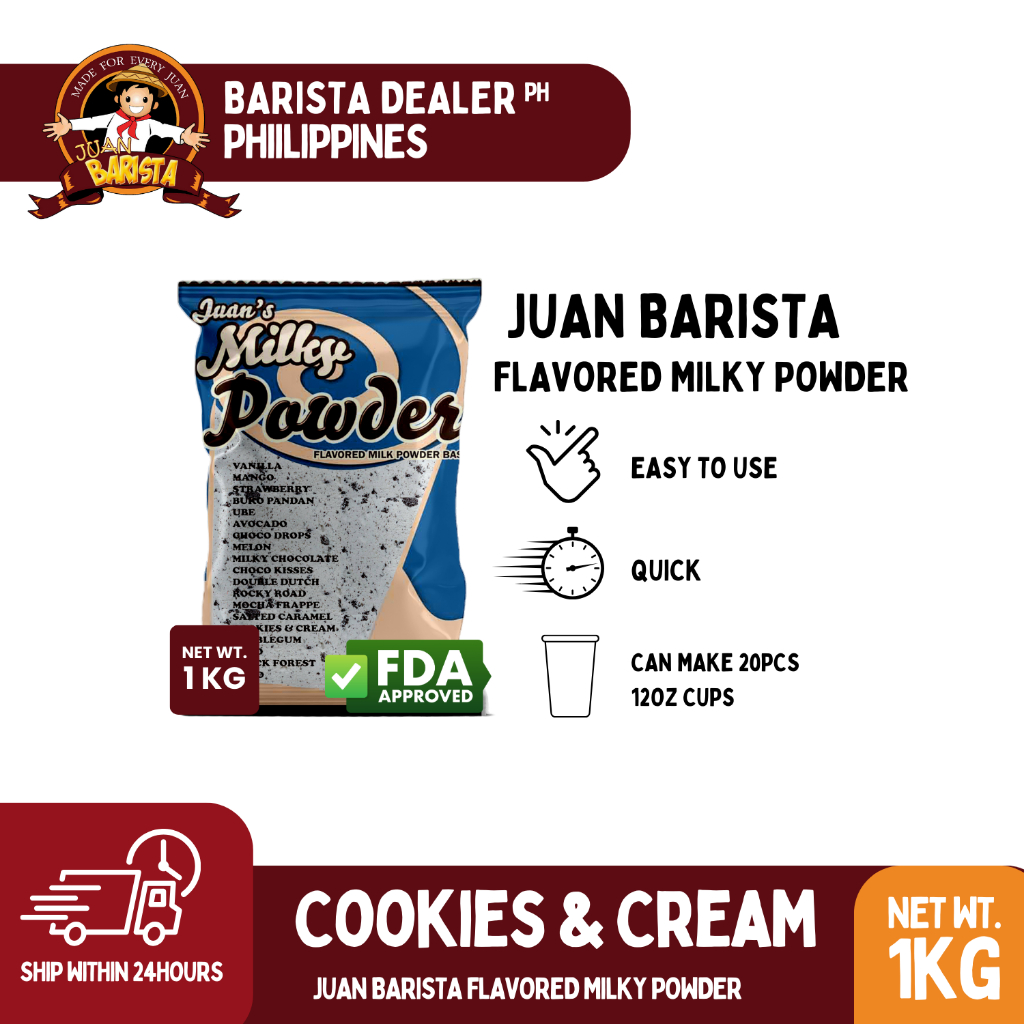 Juan's Milky Cookies & Cream Premium Flavored Milk Powder Mix for Milkshake and Milk Tea 1 Kilogram