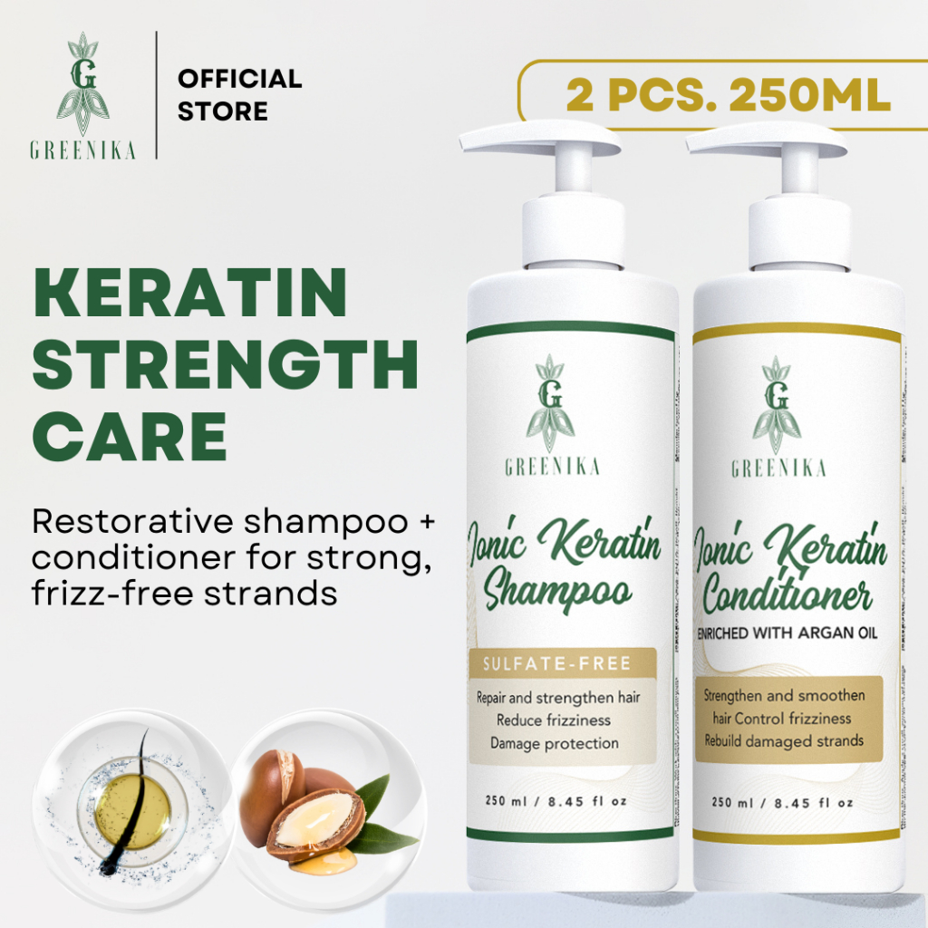 [ 2PCS 250ML SHAMPOO & CONDITIONER ] Greenika Ionic Keratin Shampoo + Conditioner Bundle 250ml Pair