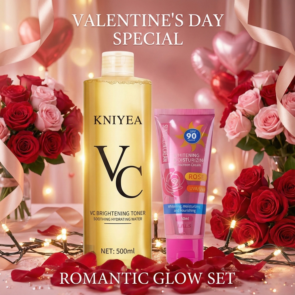 Vitamin C Brightening Trio: 500ml Toner + Serum + 60ml SPF 50 Sunscreen for Face