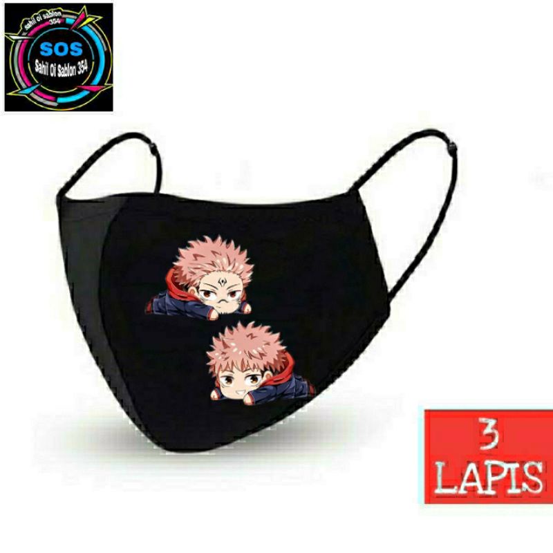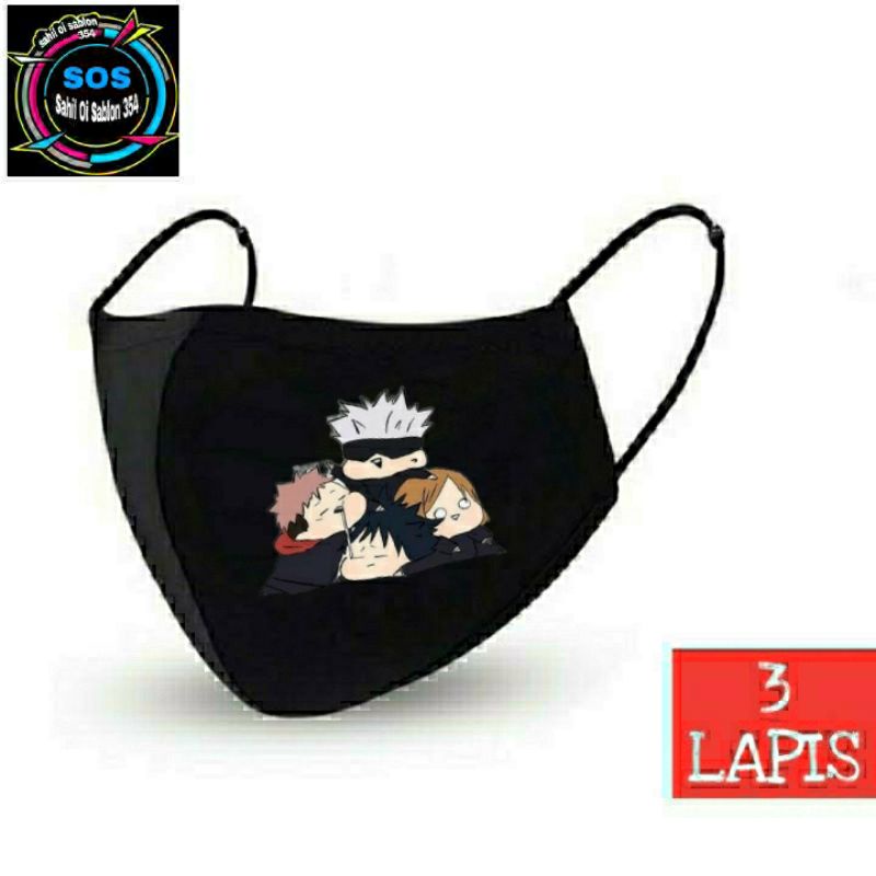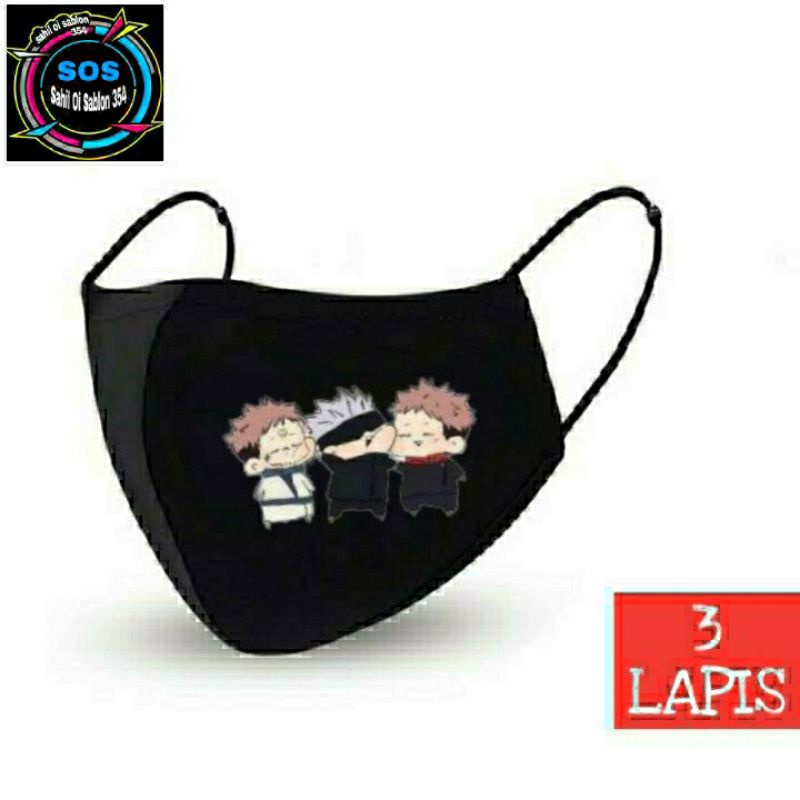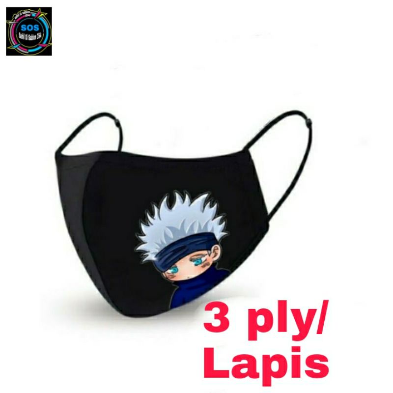 JUJUTSU KAISEN/SATORU GOJO Chibi mask, 3 ply/ply fabric for children, adults, Earloop