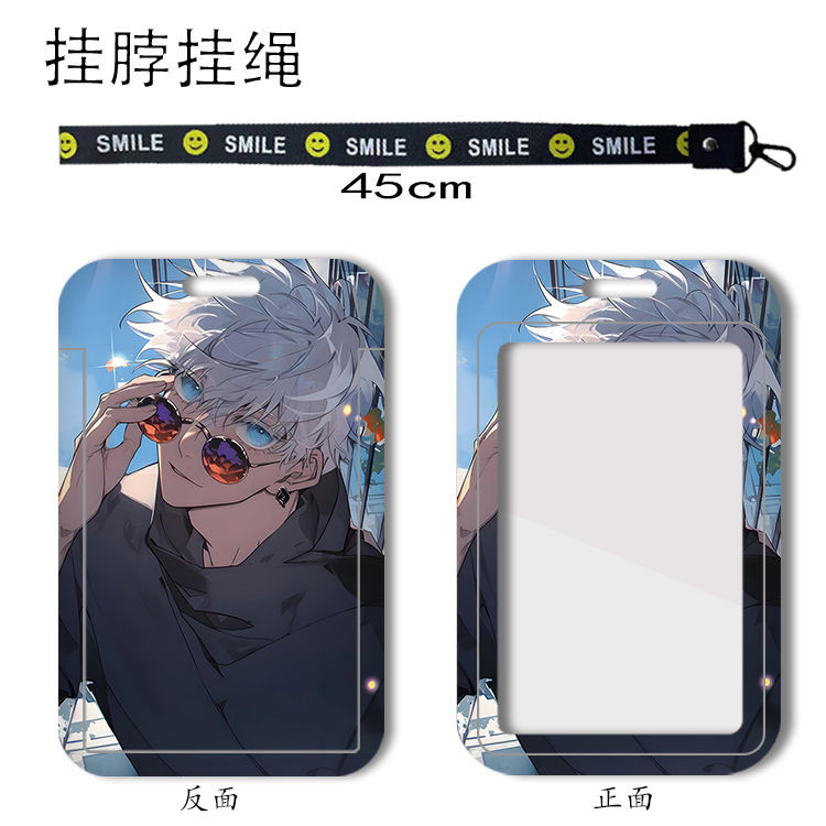 Jujutsu Kaisen Satoru Gojo Custom Card Holder Student's School Badge Bus Card MRT Card Personal ID Card Protective Cover with Hanging Rope