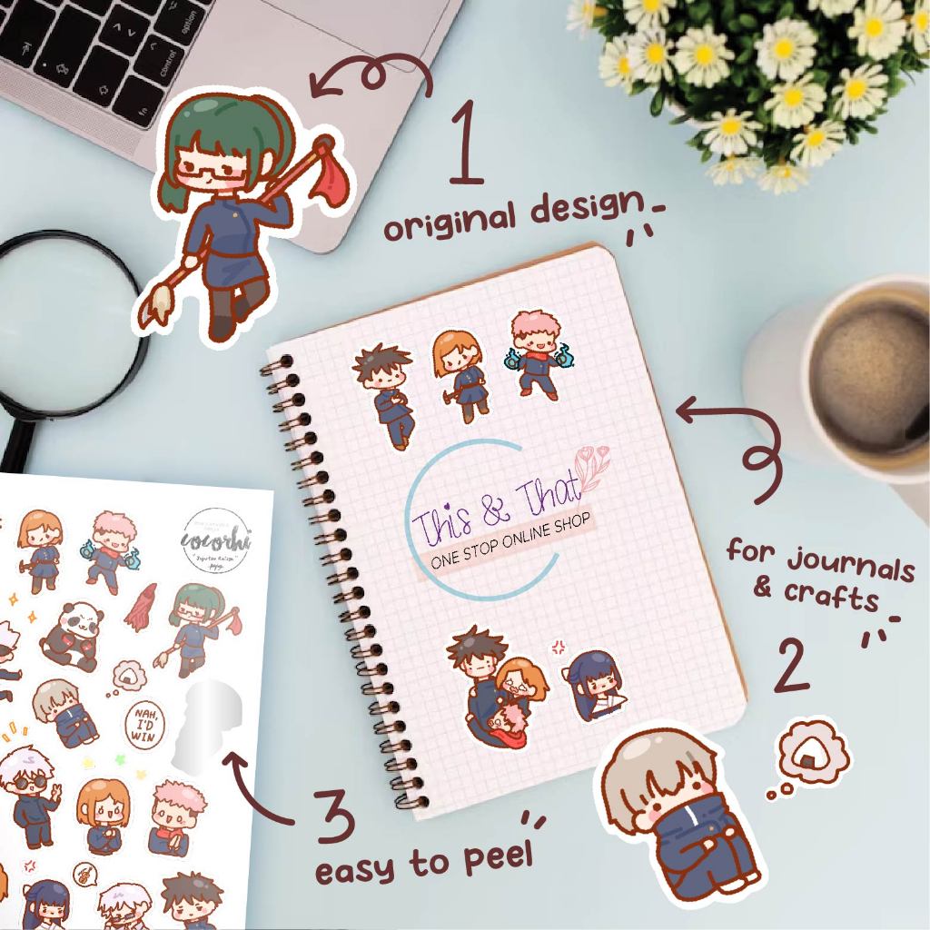 Cute Jujutsu Kaisen Stickers | A5 size for journals & crafts