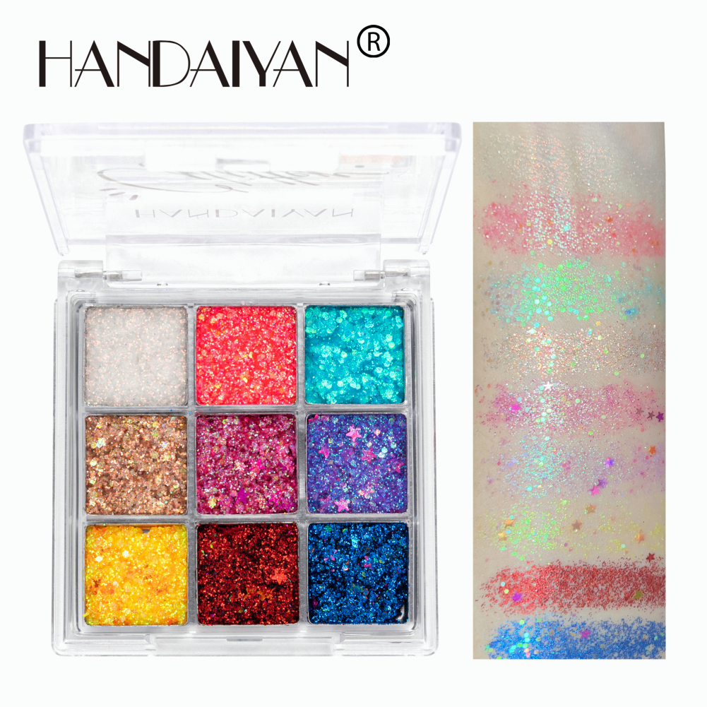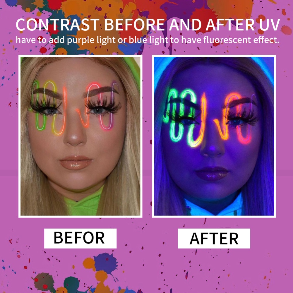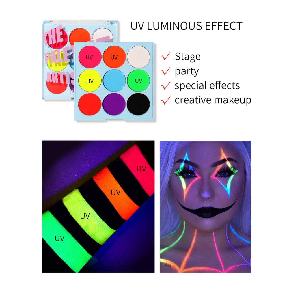 Julystar 9 Colors UV Glow in Dark Fluorescent Eyeshadow Palette Stage Clubbing Neon Makeup Palette Pigment Luminous Face Body Comestic For Festival/Party