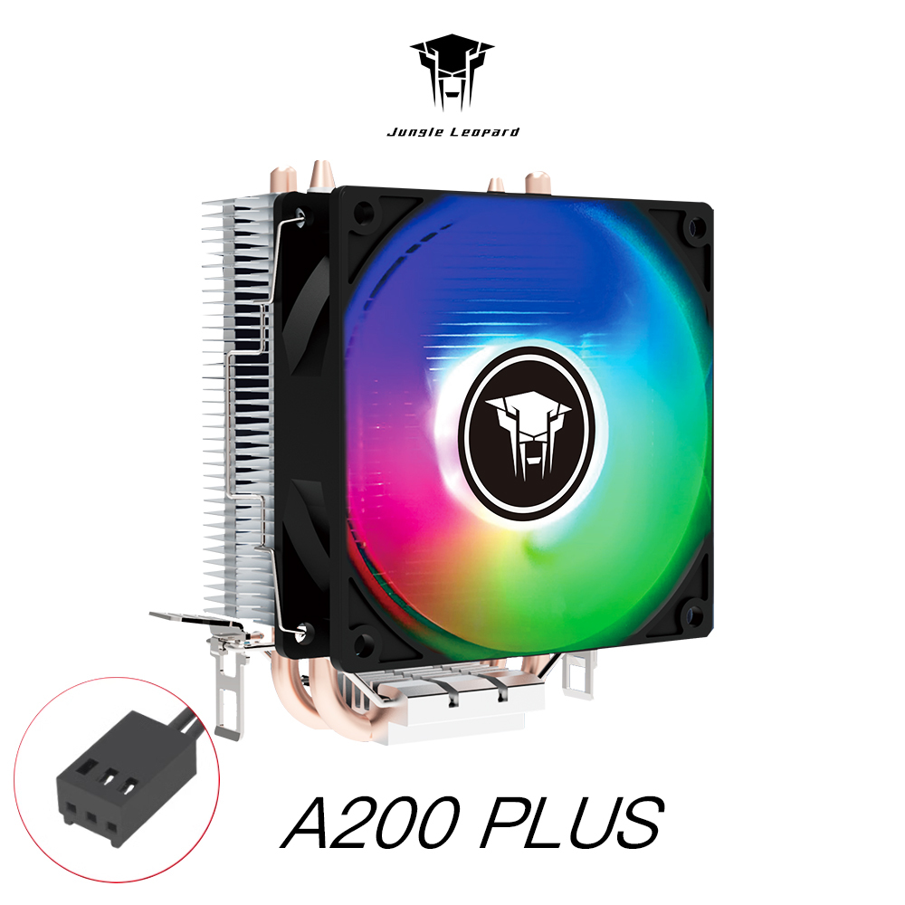 Jungle Leopard A200 PLUS CPU Cooler Color LED 2 Heat Pipes Efficient Cooling 90mm PC Cooler Fan 3PIN Interface For Intel LGA1155 LGA1200 LGA1700 AMD FM2+ AM4 AM5