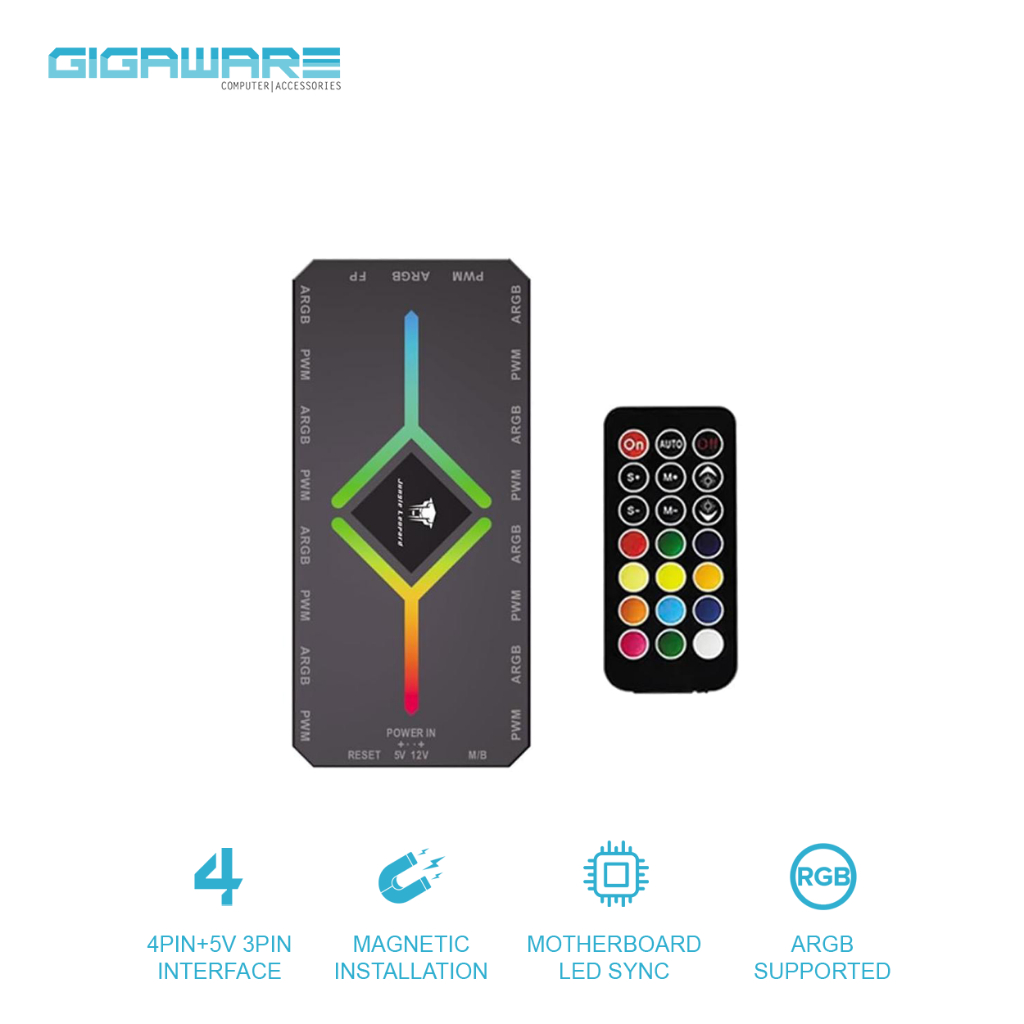 Jungle Leopard ARGB/PWM 1 to 9 Ports 4Pin PWM, 5V 3Pin ARGB Fan Hub With Wireless Remote Control