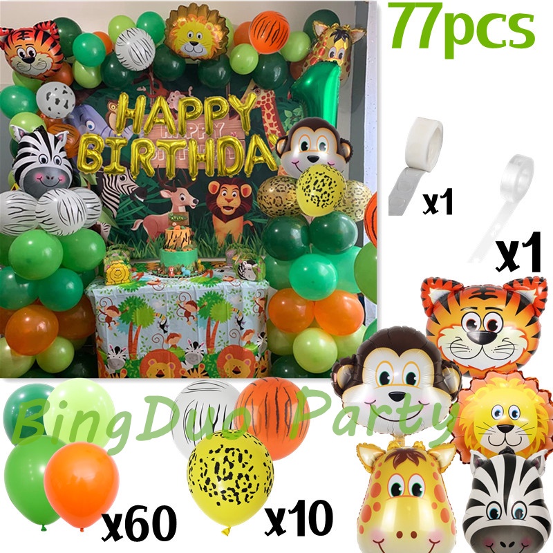 Jungle Safari Theme Animal Head Balloon Garland Arch Kit Monkey Tiger Foil Balloon 32inch Gold Numebr Patry Decorations