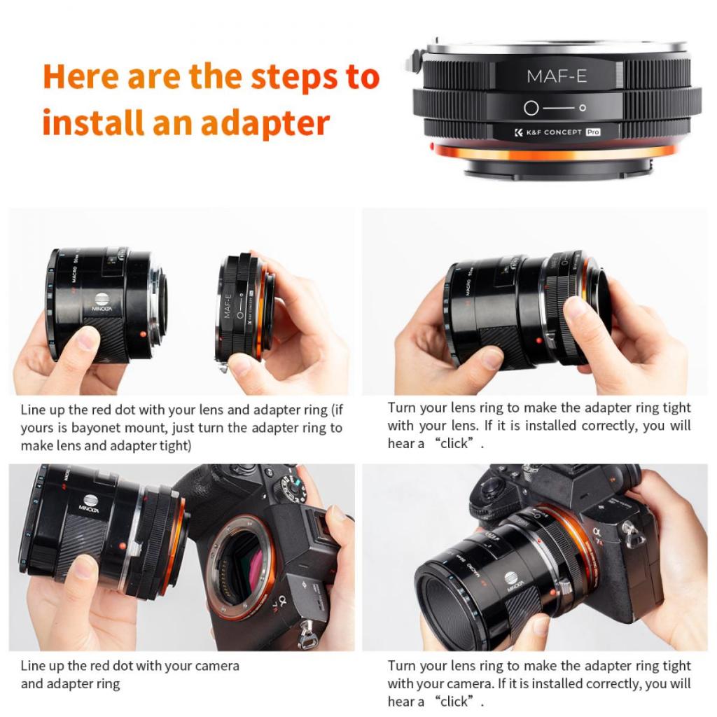 K&F Concept Lens Adapter for Sony Alpha Minolta AF A-Type Lens to NEX E-Mount Mirrorless Camera A7 A7R NEX-3 a6000