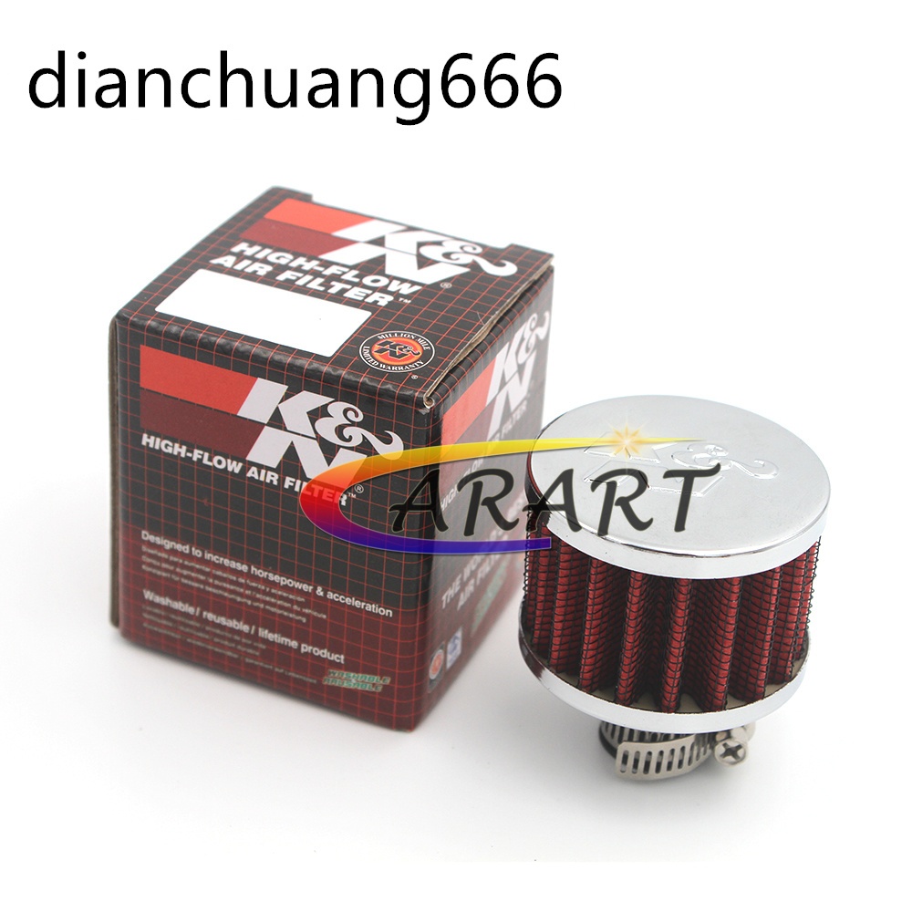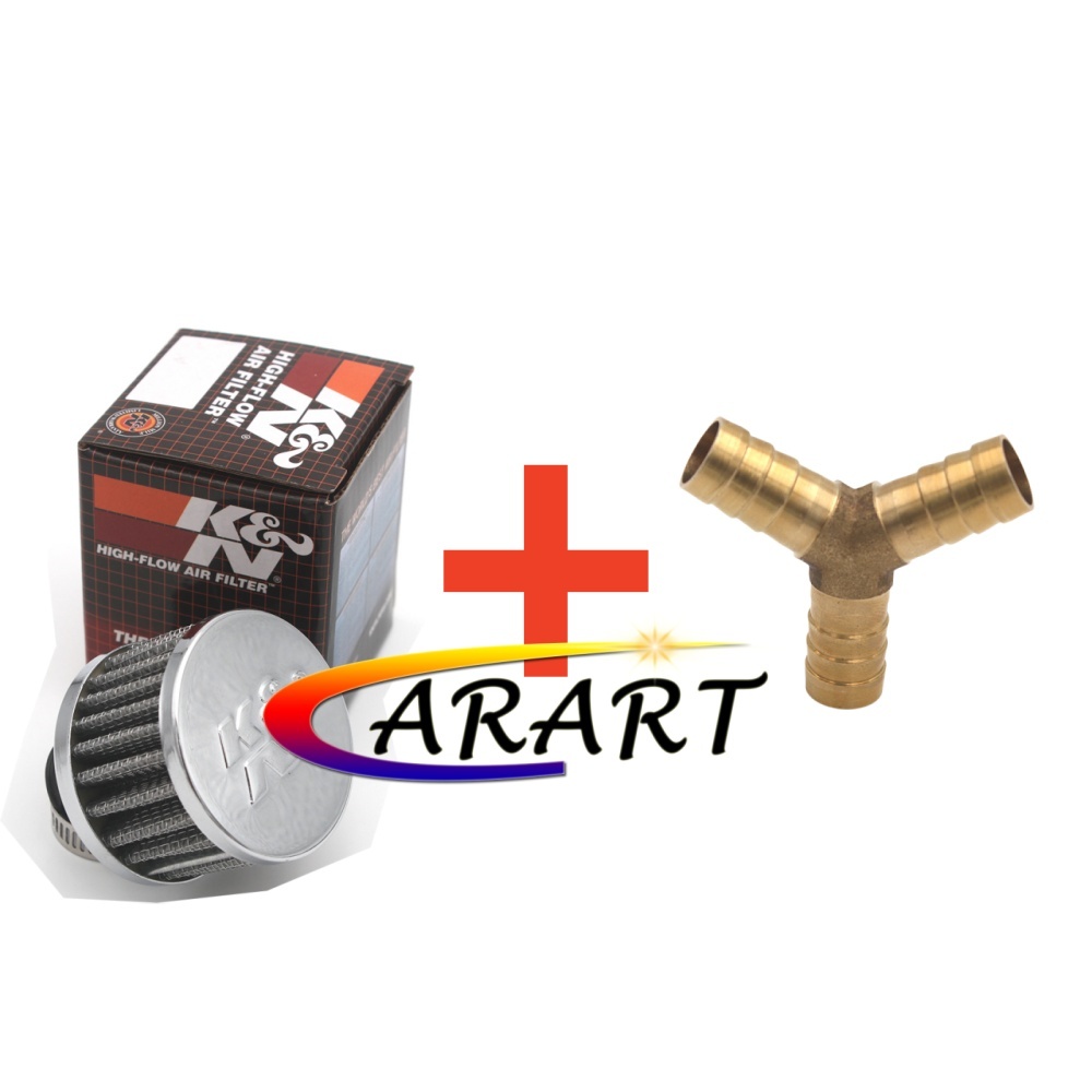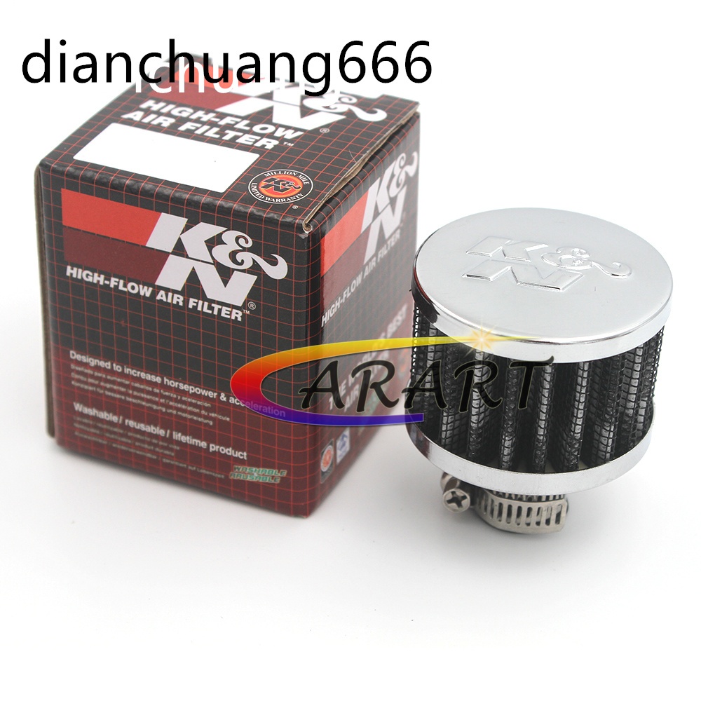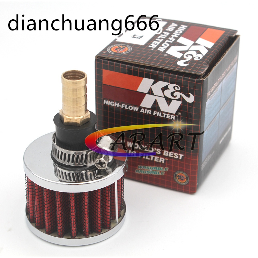 K&N 12mm Engine / Oil Crankcase Breather Valve Intake Filter Mini KN Air Filter Copper-Straight Adapter-12MM