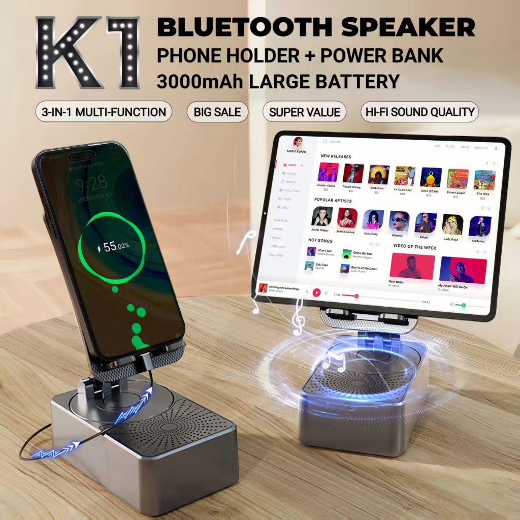 K1 Loa Bluetooth (3 trong 1) Multifunctional phone stand + Bluetooth speaker + Portable power bank