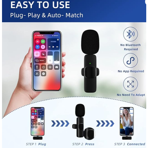 K8 Vlog Wireless Lavalier Microphone, Noise Reducing Microphone for Vlogging, Live Streaming