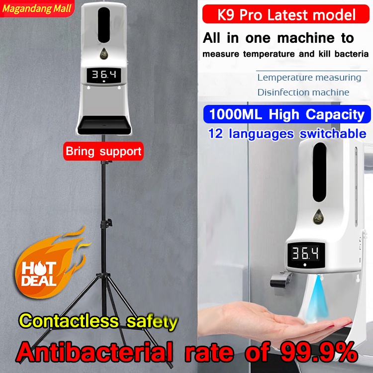 K9 PRO Automatic Alcohol Dispenser With Sensor Infrared Thermometer With Automatic Soap Dispense