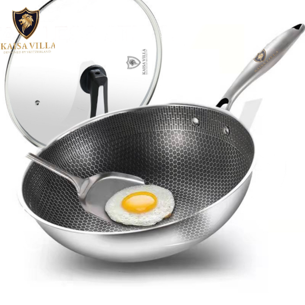 KAISA VILLA pan non stick pan stainless steel wok pan pot with cover frying pan