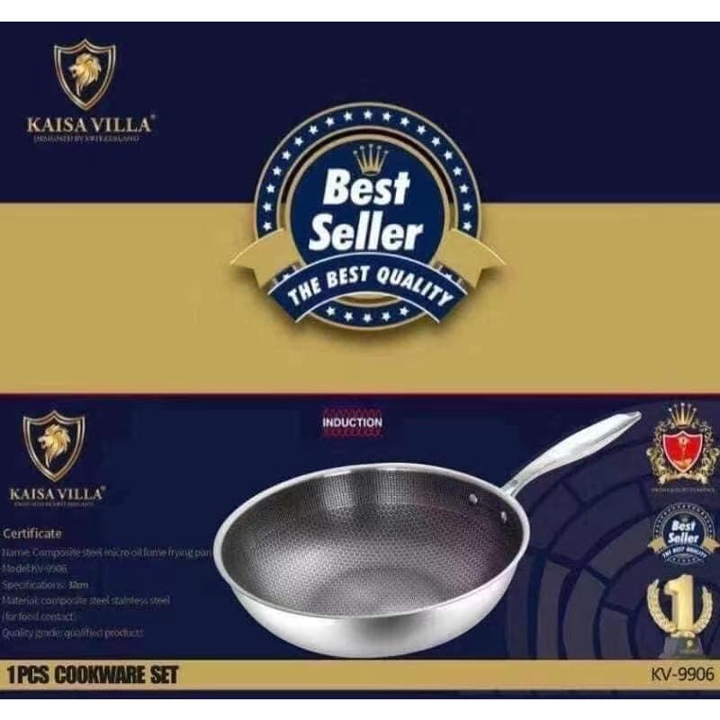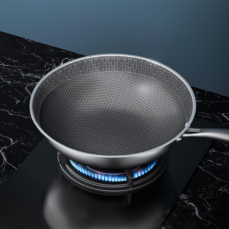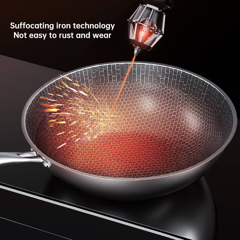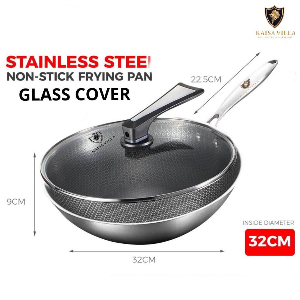 KAISAVILLA Non Stick Pan Stainless Steel Non Stick Frying 32CM Wok Pan