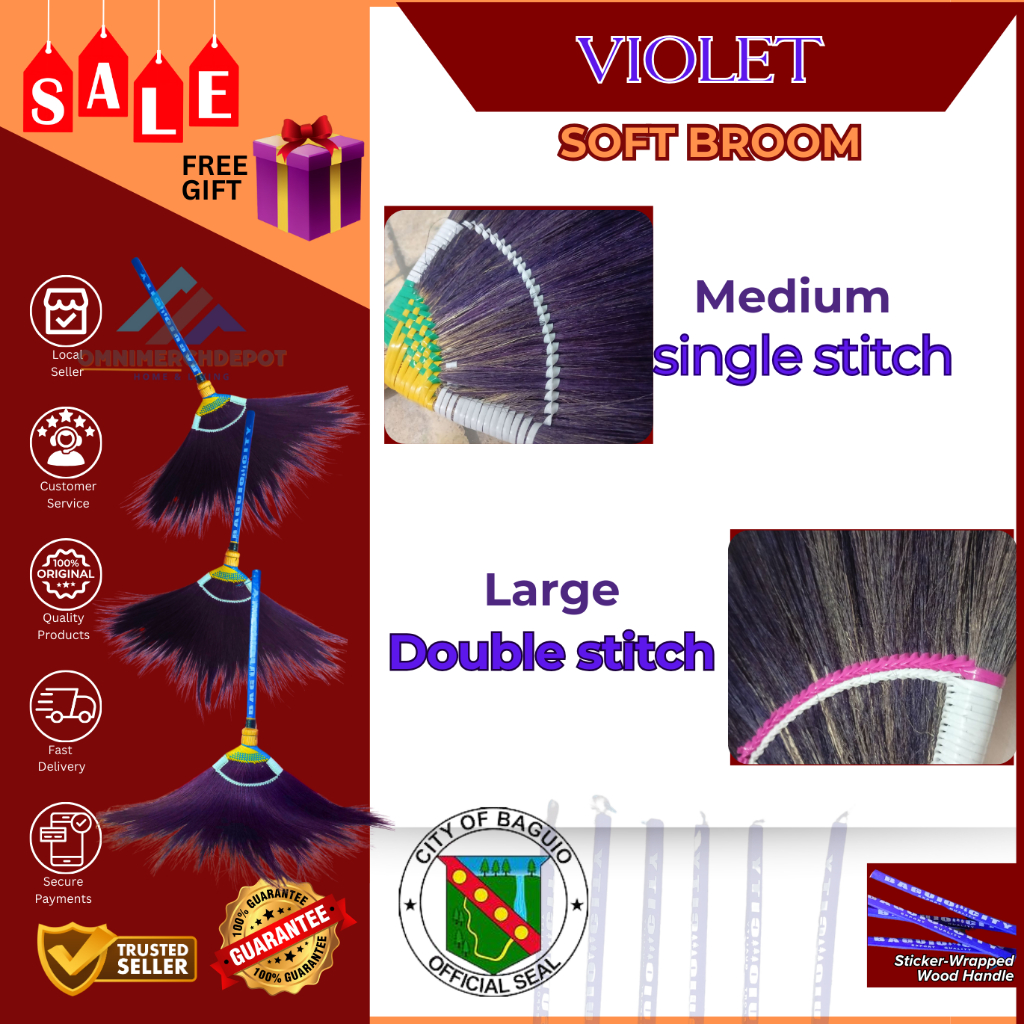 KAMBOJ Med&Large Violet Soft Brooms Walis tambo Makapal at Matibay Broom Sweeper Softbroom walis