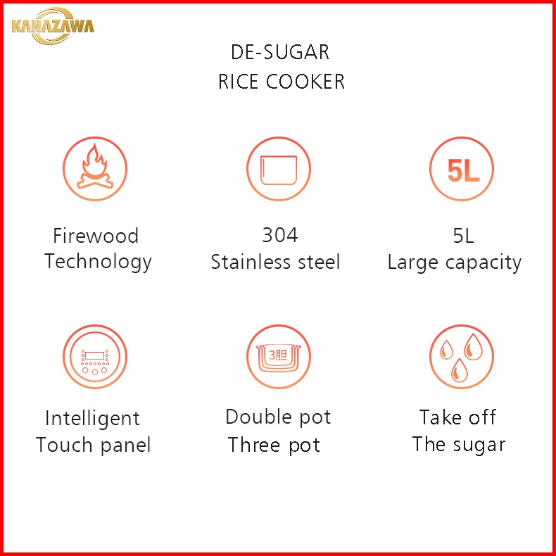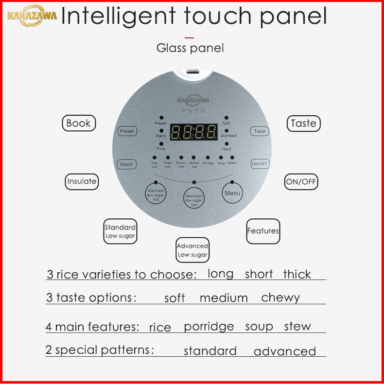 KANAZAWA Rice Cooker Smart Low Sugar LCD Smart Touch Panel 5L Multifunctional Filter Sugar Healthy