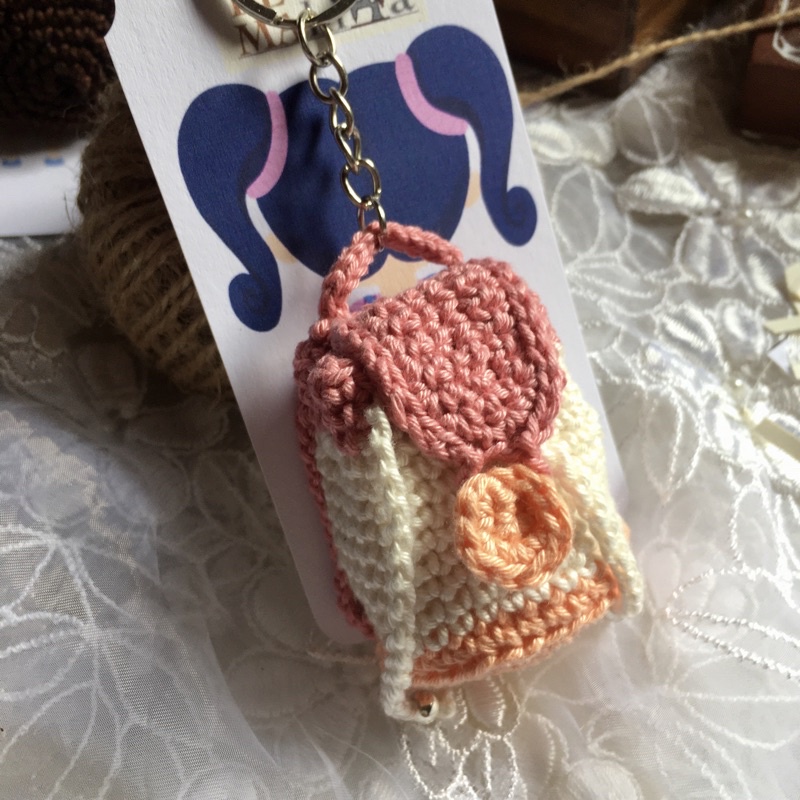 KARTEEB crochet mini backpack keychain, headset holder, bag charm, diy souvenir, crochet, handmade