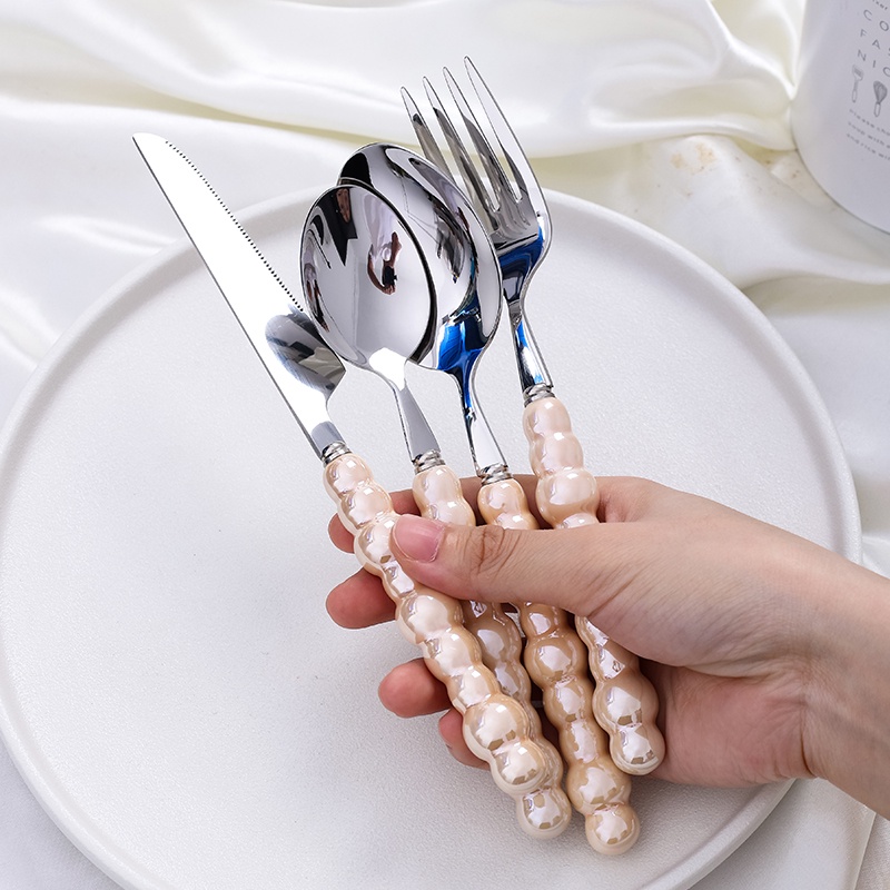 KATELV 304 Stainless Steel + Ceramic Handle Cutlery Set Elegant Pearl Style Spoon and Fork Set Western Dinnerware Utensils