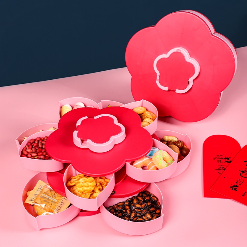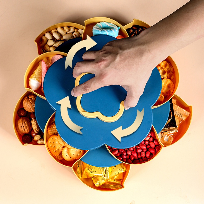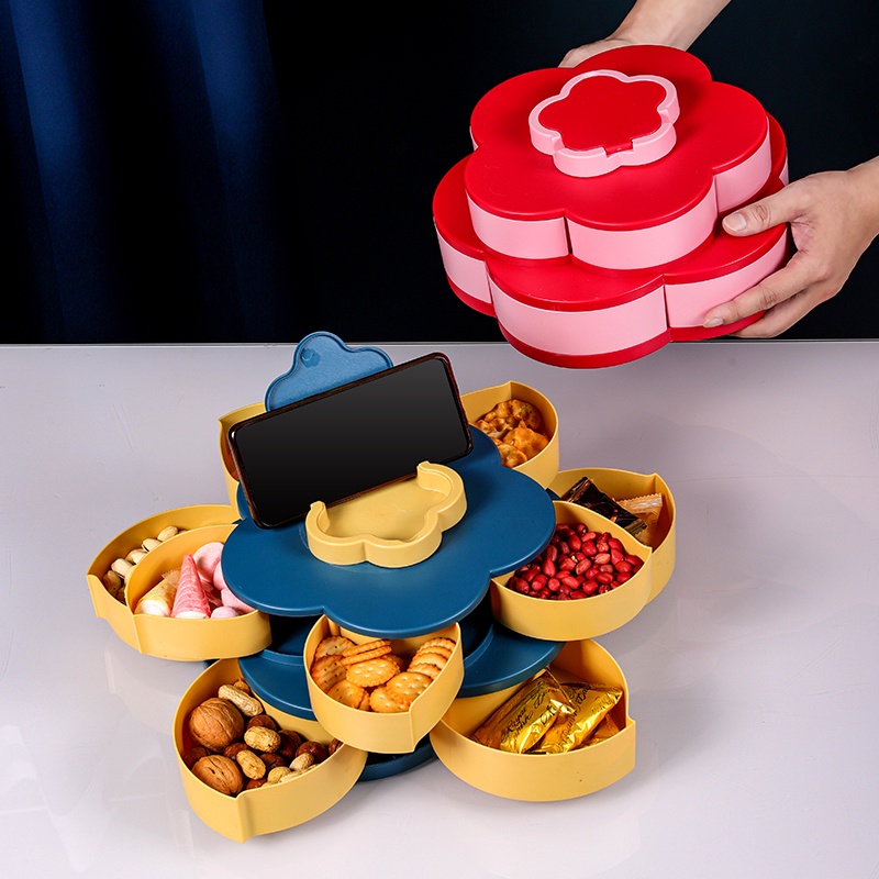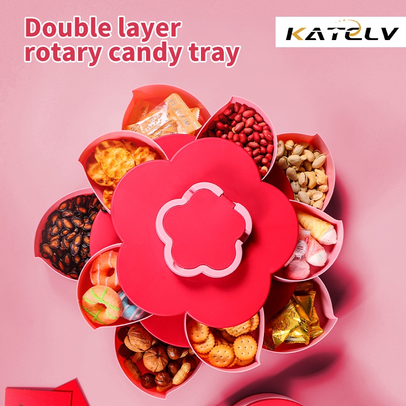KATELV Creative Double-Deck Nut Candy Tray Flower Food Display Plate Storage Box Nuts Snack Rotating Gift Bottom Anti Slip Year Halloween