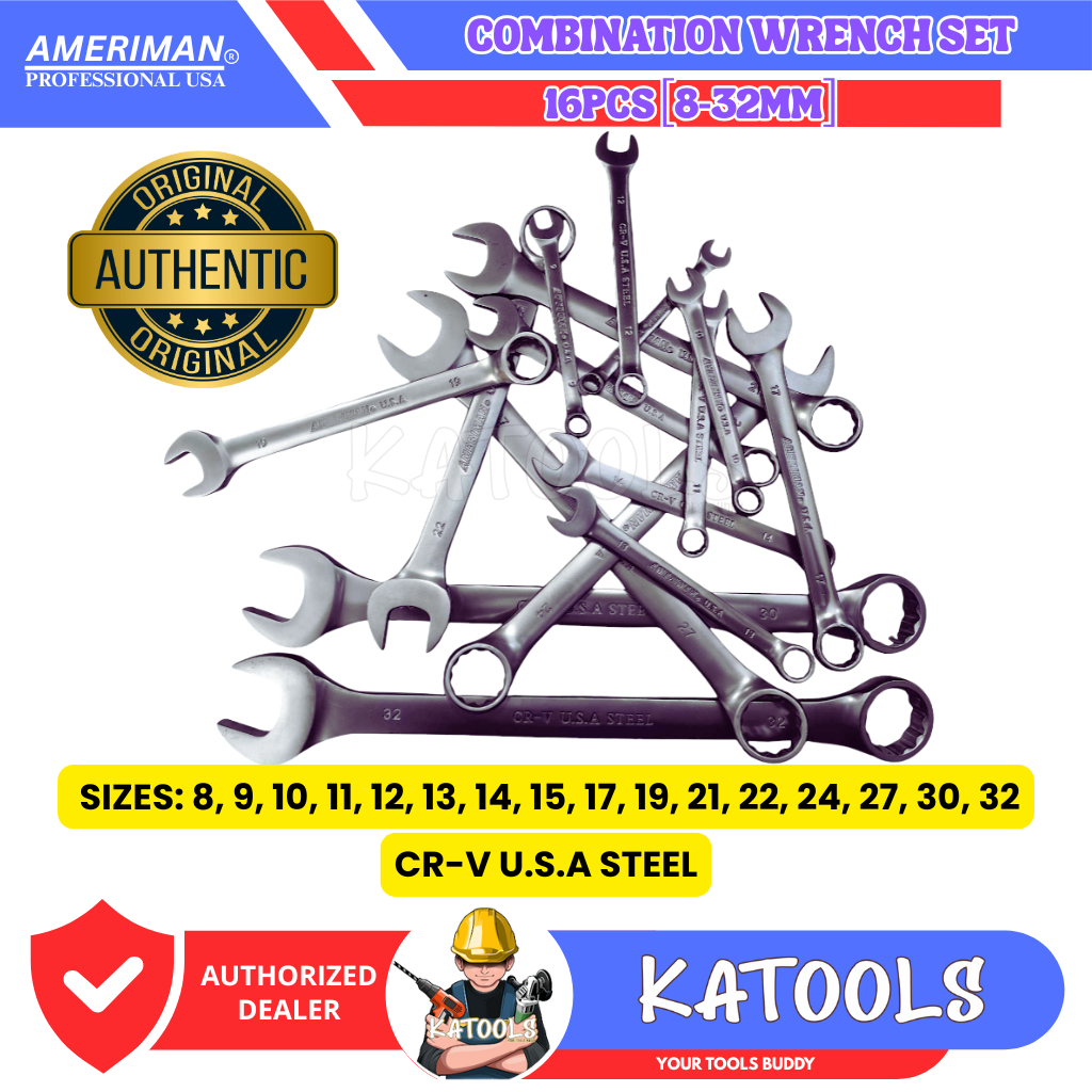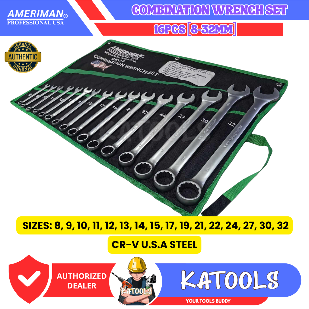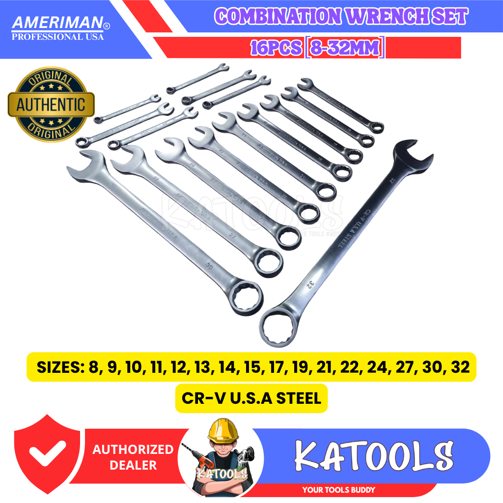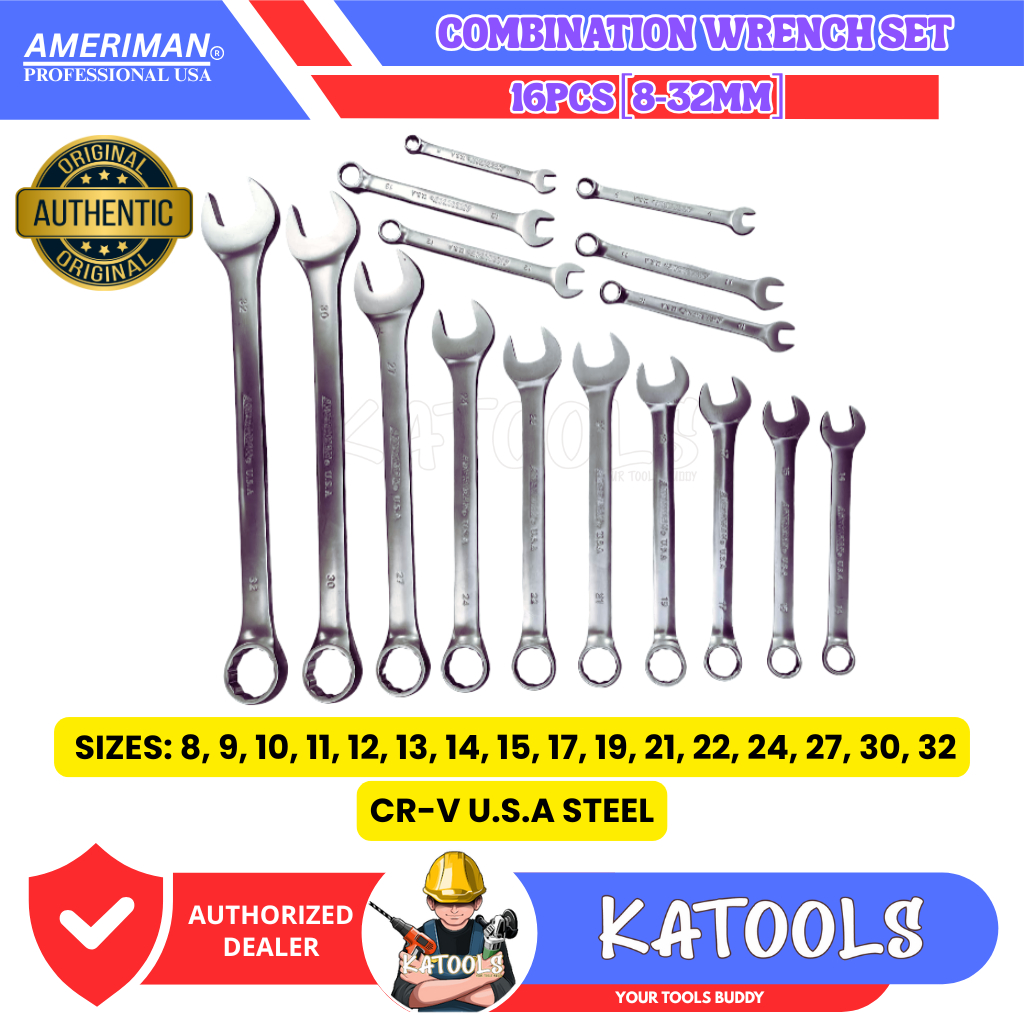 KATOOLS - Ameriman 16pcs Combination Wrench Set Tool Set Open and Closed Wrench 8-32mm