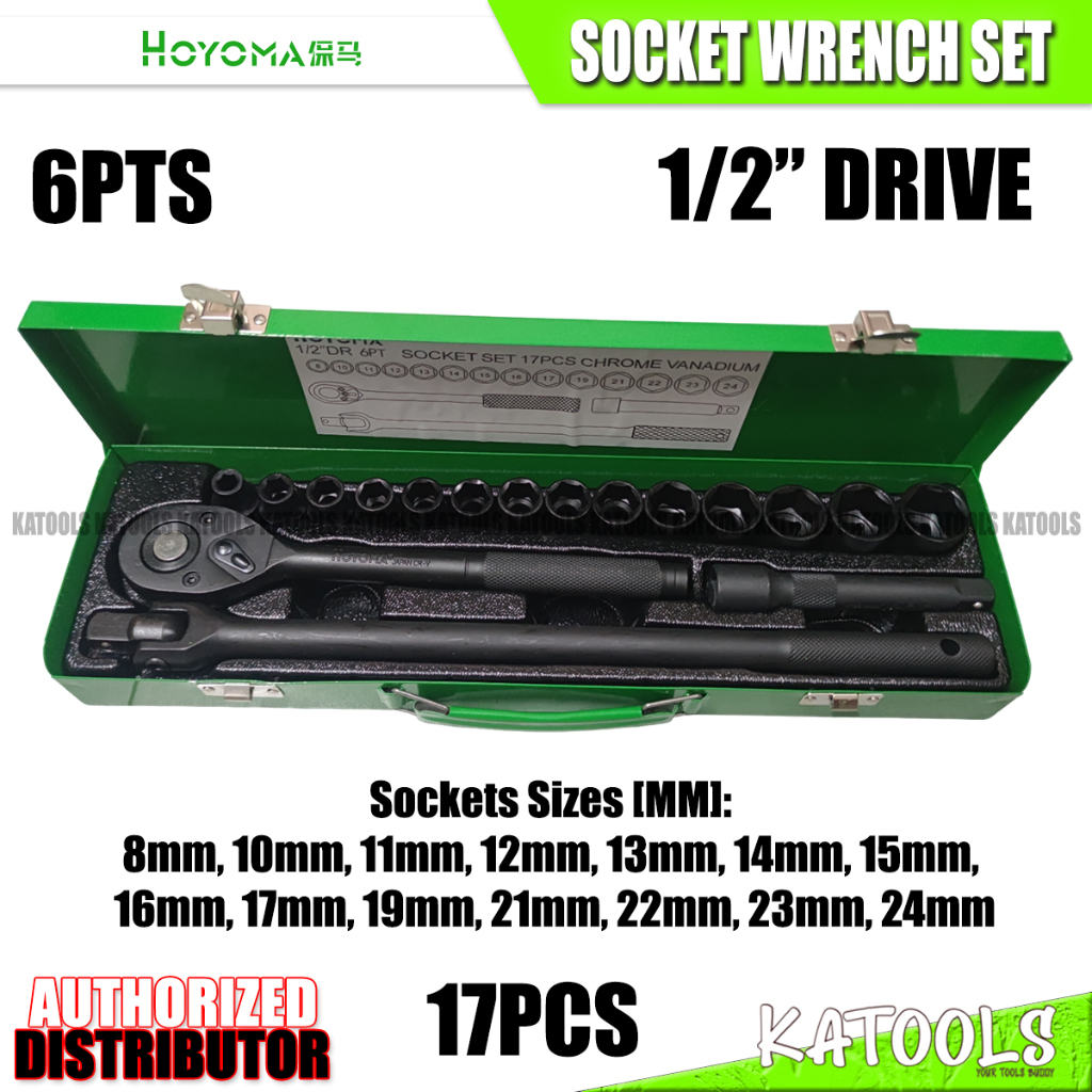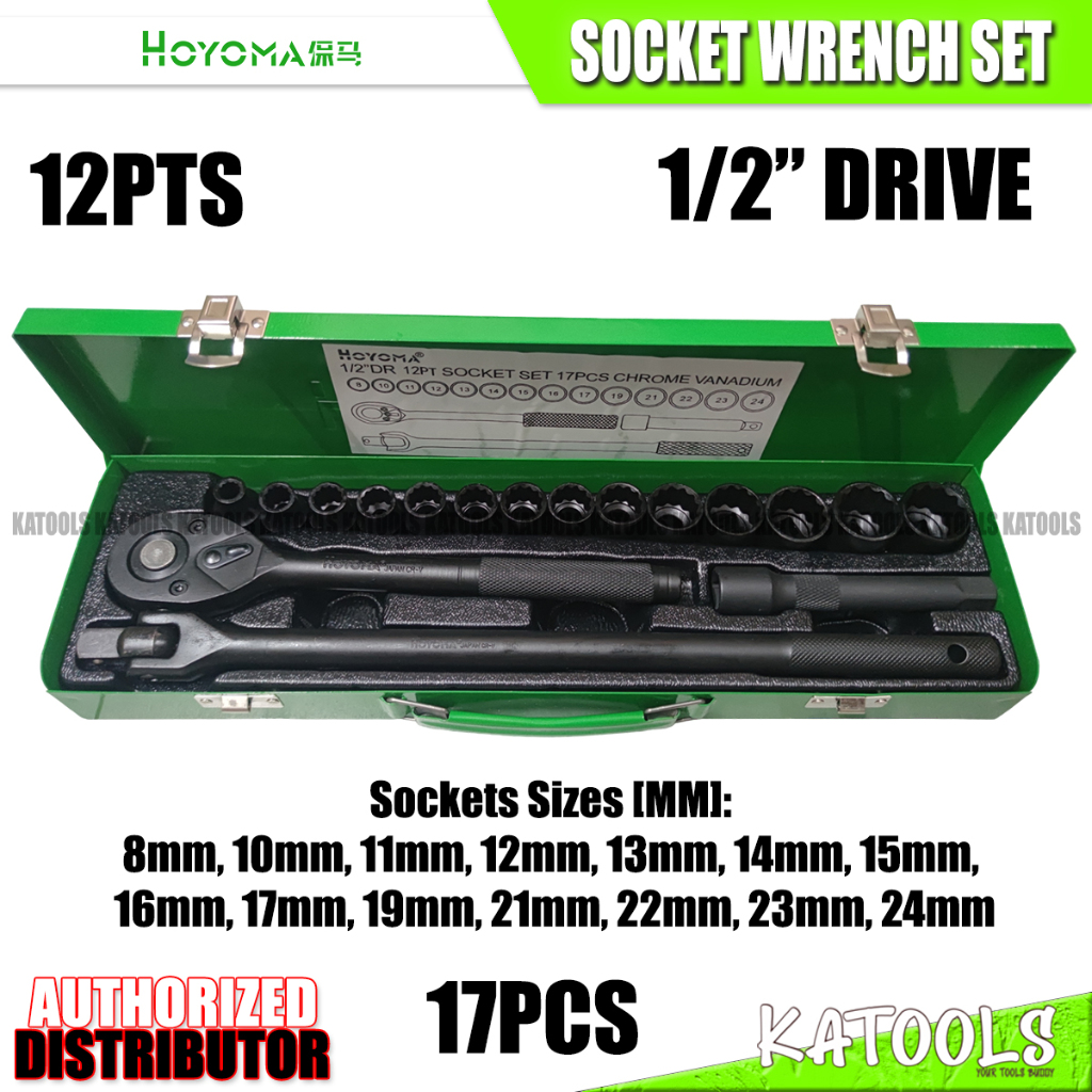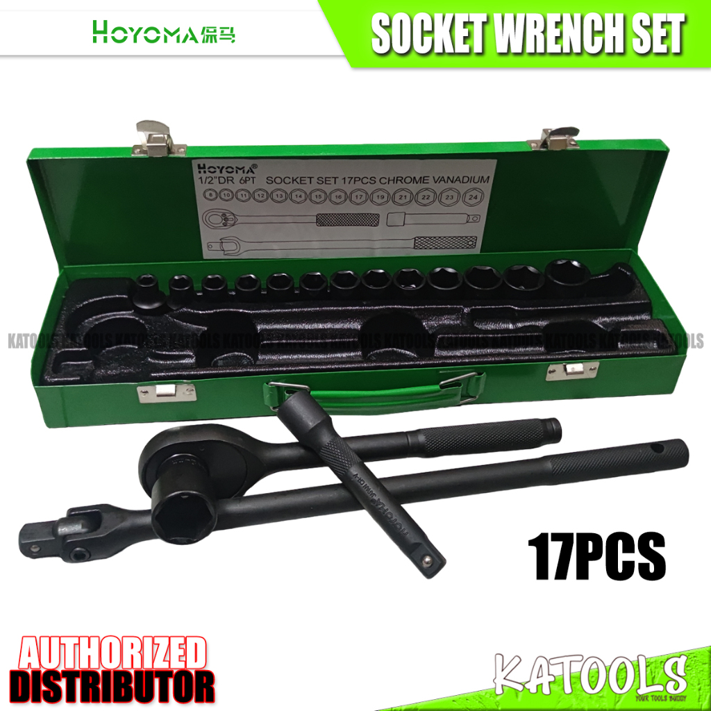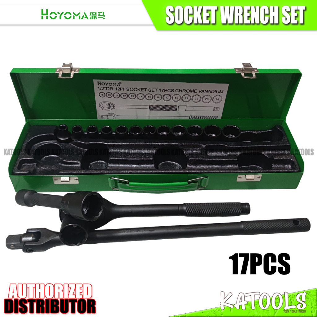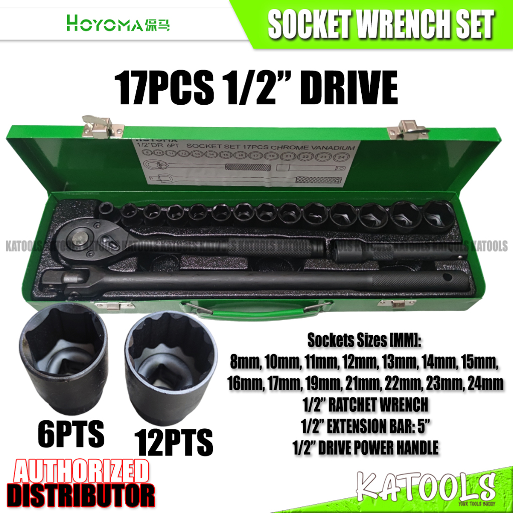 KATOOLS ~ Hoyoma Japan 17pcs 1/2 Inch Drive Socket Wrench Set Tool Set for Car and Motorcycle