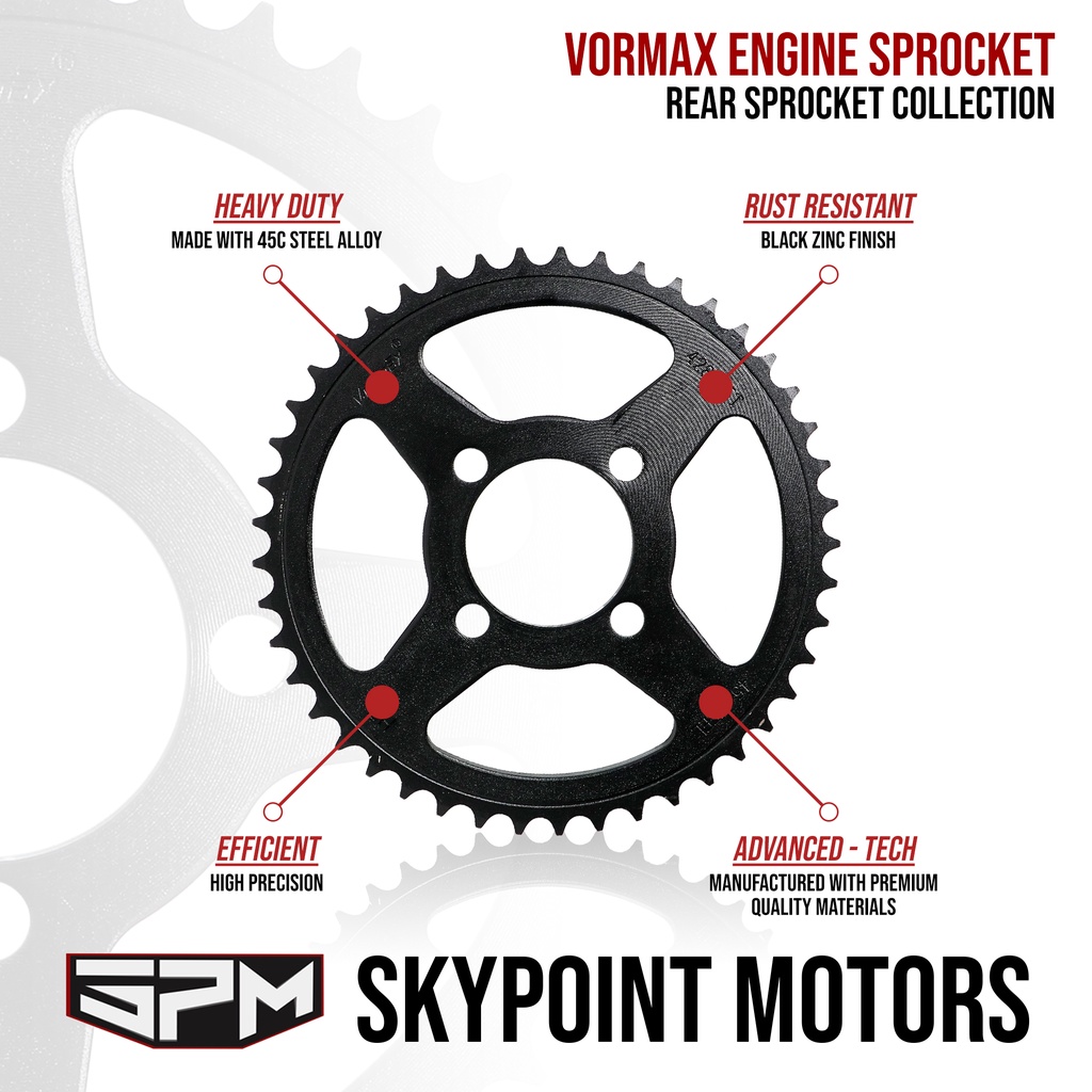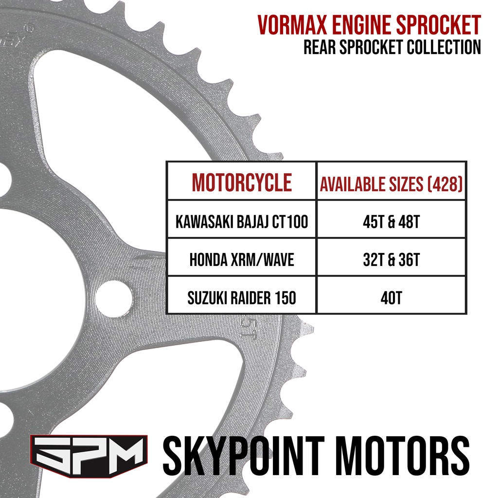 KAWASAKI BAJAJ CT100, HONDA XRM/WAVE, SUZUKI RAIDER 150 REAR SPROCKET COLLECTION VORMAX (9103)