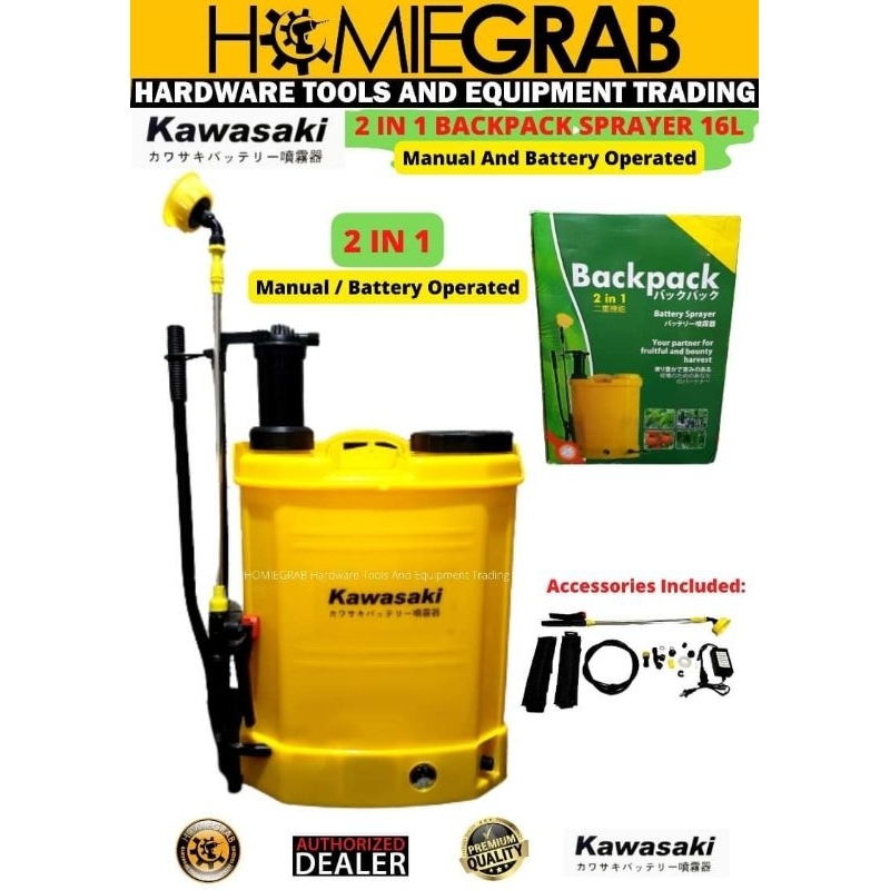 KAWASAKI Backpack Sprayer 16Liters 2in1 / SATO 2in1 Backpack Sprayer Dual (Manual/Battery Operated)