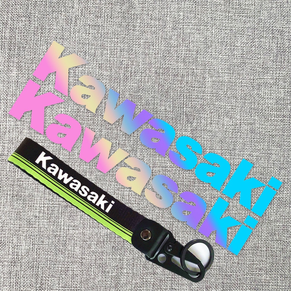 KAWASAKI Reflective Sticker Motorcycle Nylon Leather Keychain Set Side Guardrail Laser Decals Standard Size