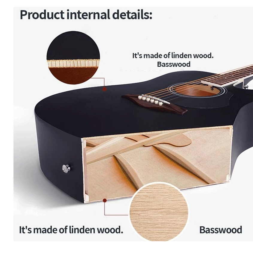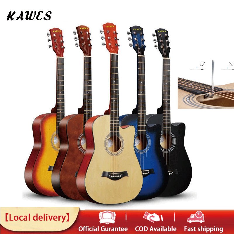 KAWES Acoustic Guitar 38" Full Set Folk Guitar Popularity Novice Beginners Practice Students