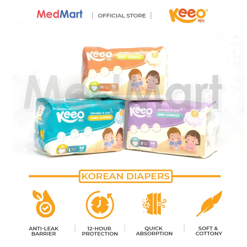 KEEO Korean Baby Diapers (MEDIUM: 12 pads per pack)