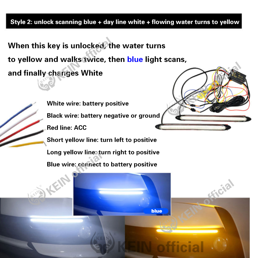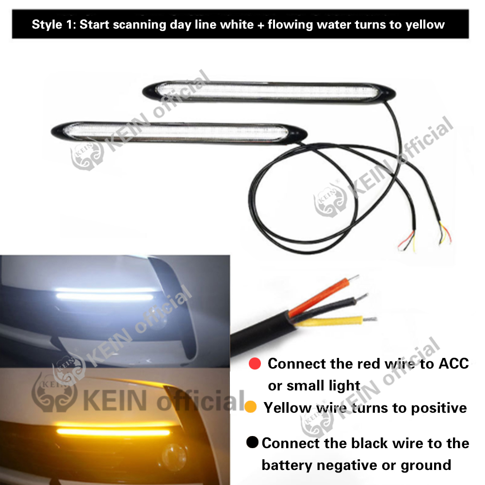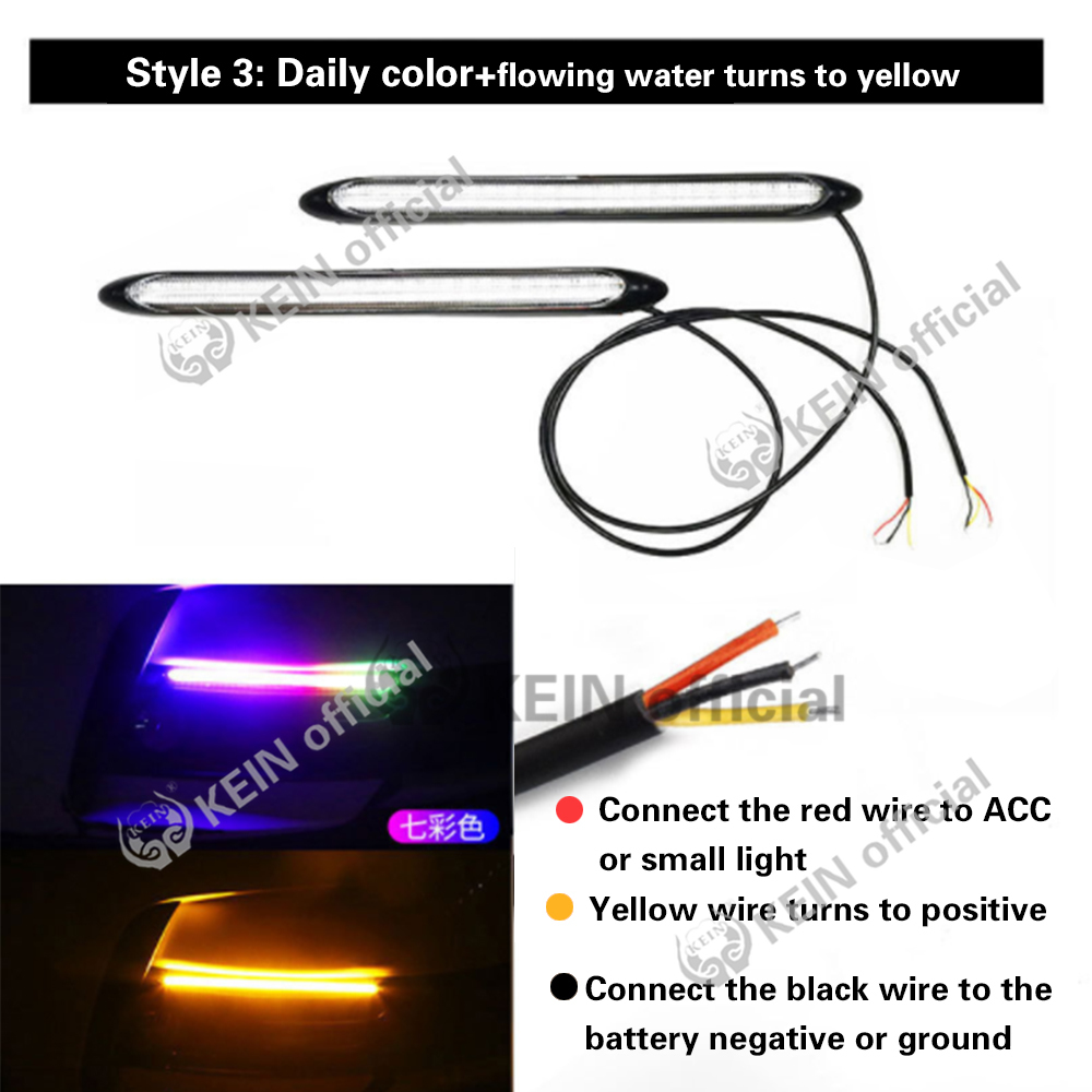KEIN 2Piece DRL RGB Light Led Strip 12V LED Car Daytime Running Light Auto Led Running Light DRL Turn Signal Lamp Flexible Strip Tricolor White and Yellow and Blue Drl Turn Signal Light