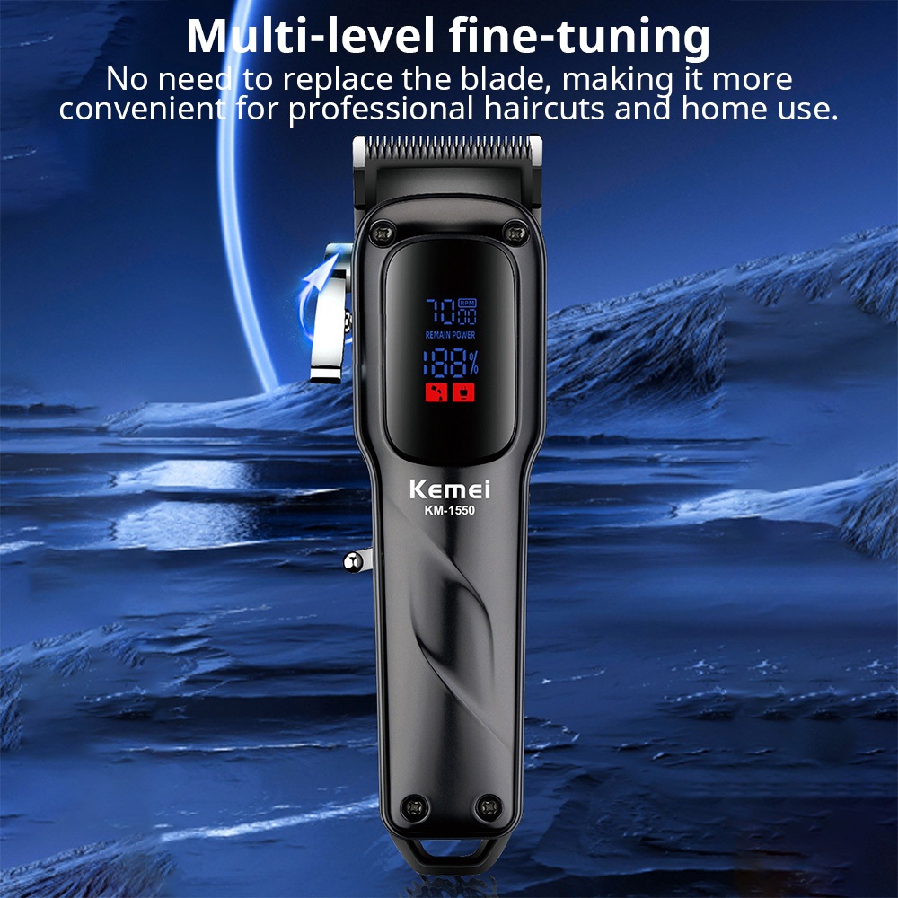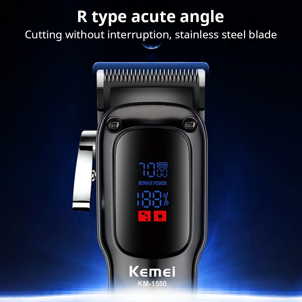 KEMEI KM-1550 Hair Clippers Trimmer Rechargeable Professional Electric Hair Clipper Cordless LCD Monitor Barber Hair Clipper