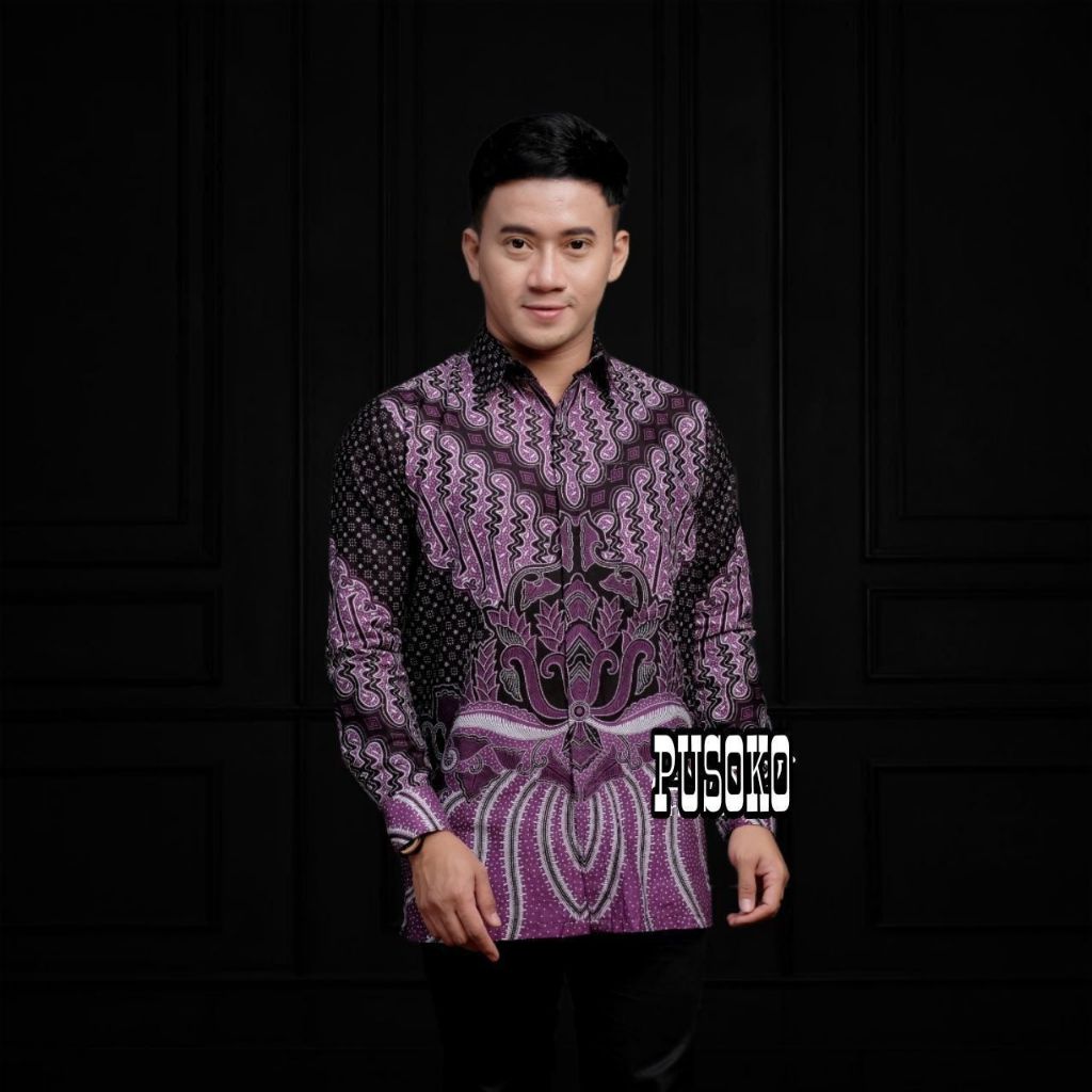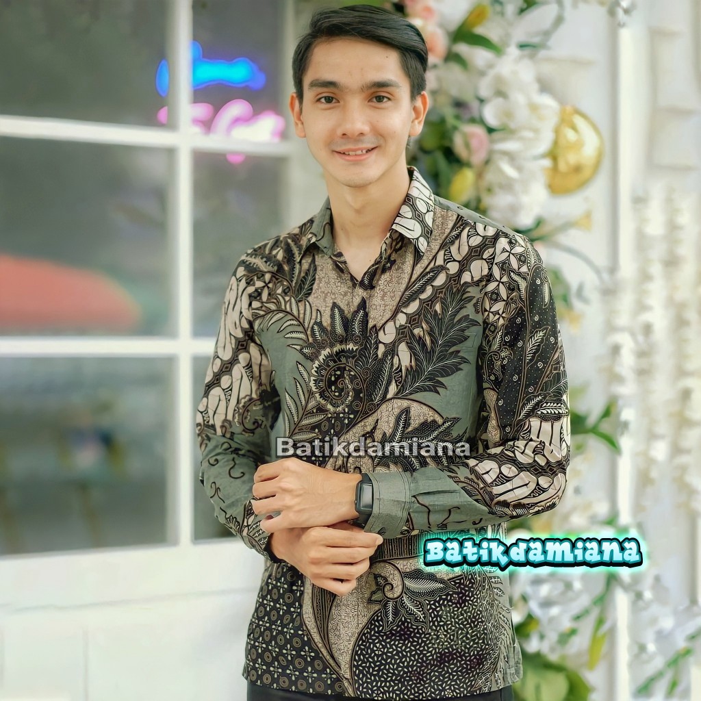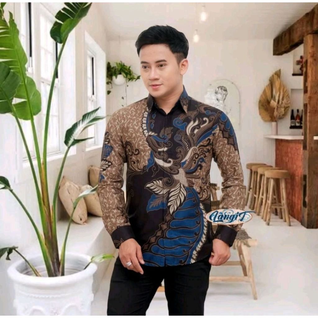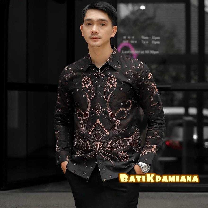KEMEJA Men's Batik Shirt Long Sleeve Modern Men's Batik with Black Bernekel motif Size M l XL XXL Sangkuriang