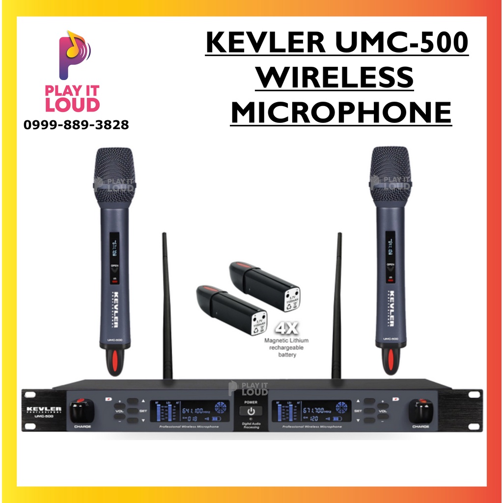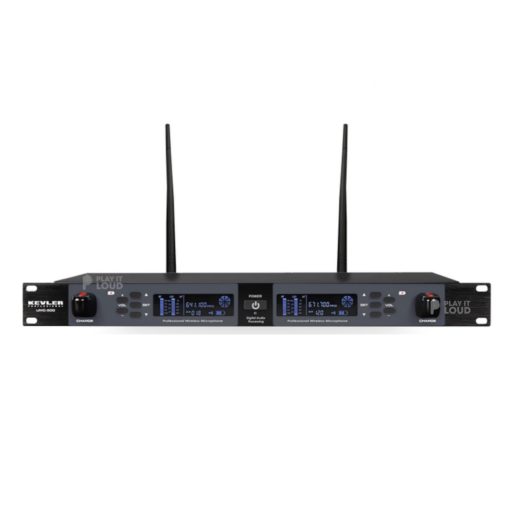 KEVLER UMC-500 PROFESSIONAL DUAL UHF WIRELESS MICROPHONE with LCD DISPLAY and RECHARGEABLE BATTERY
