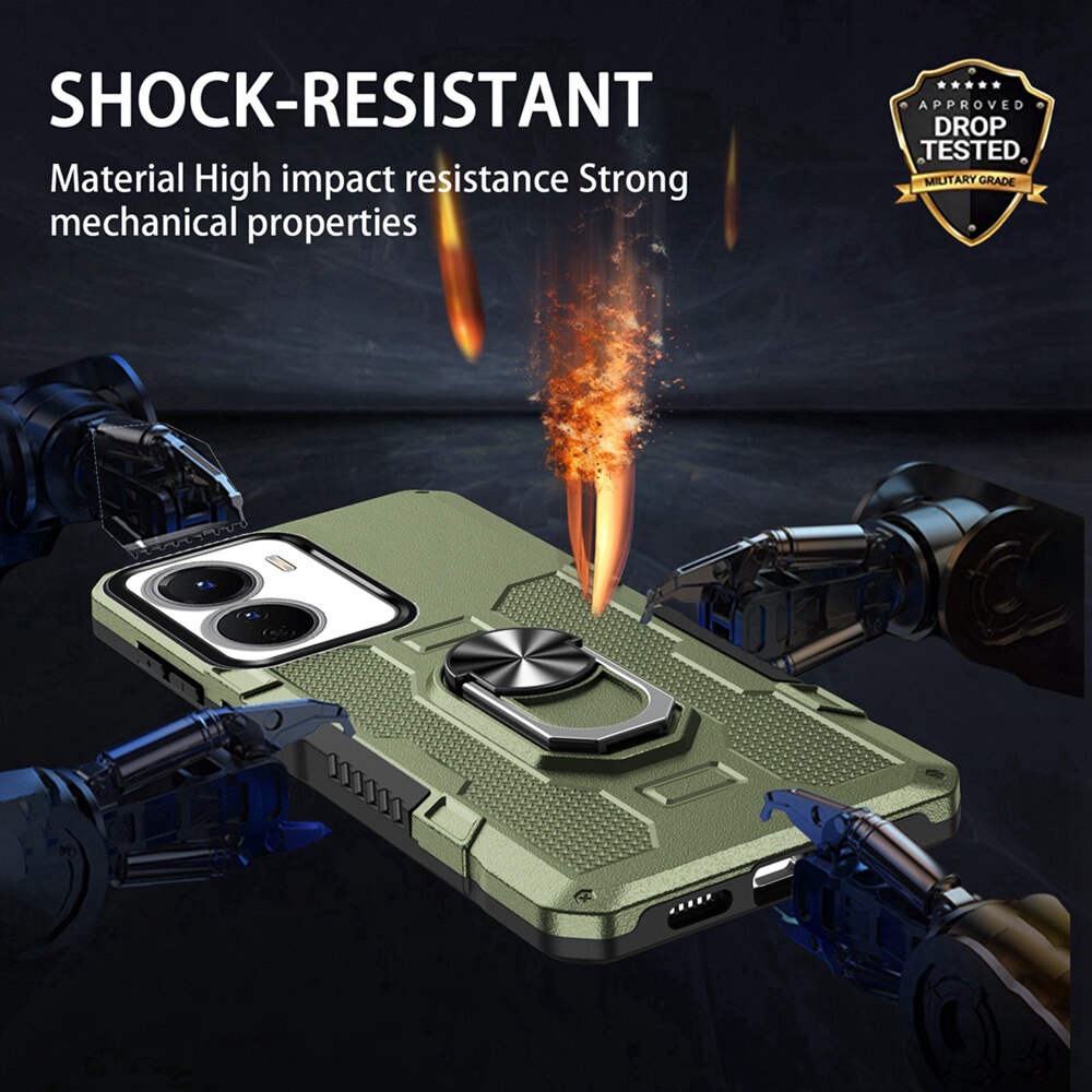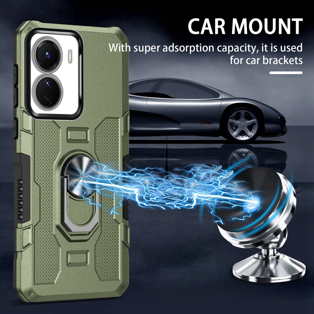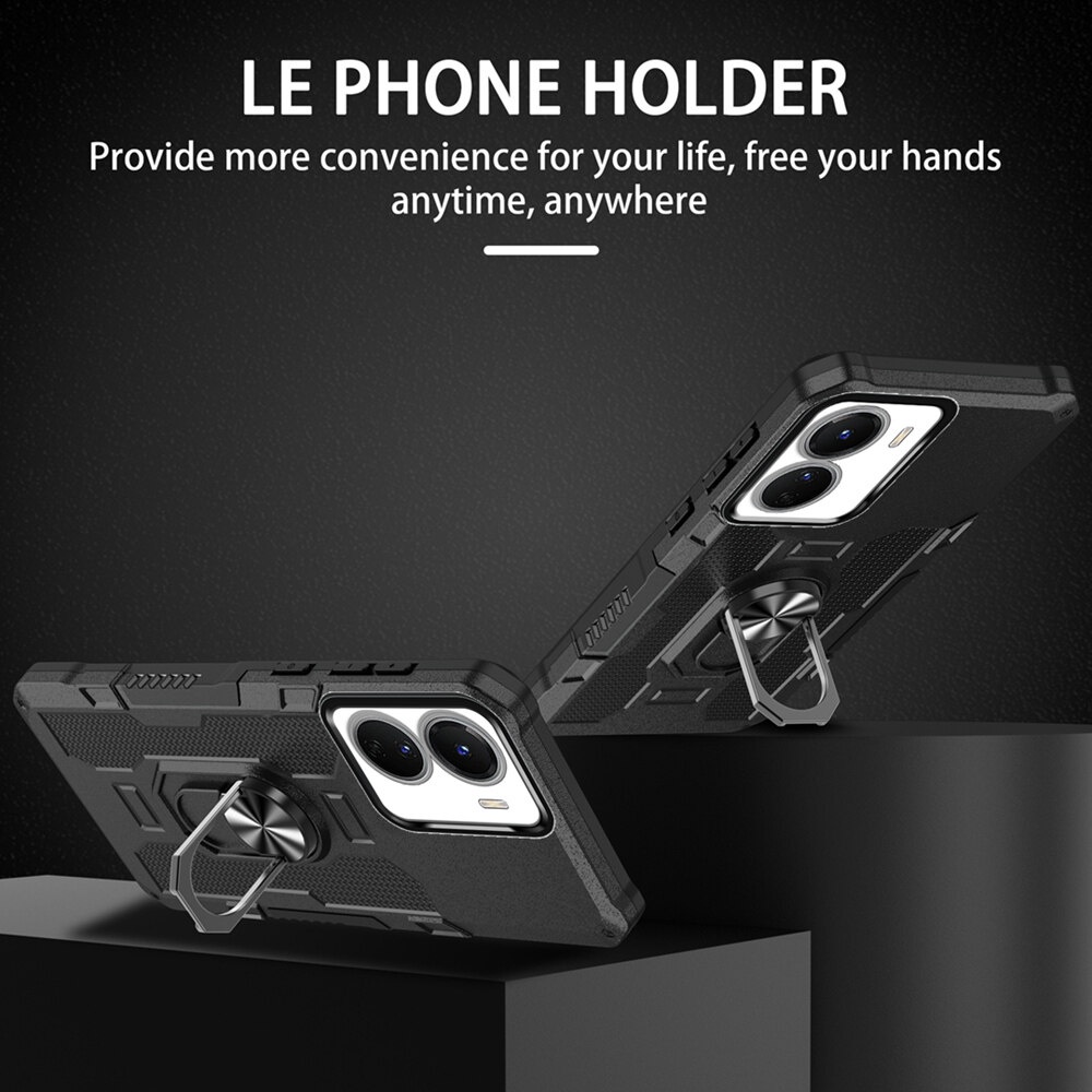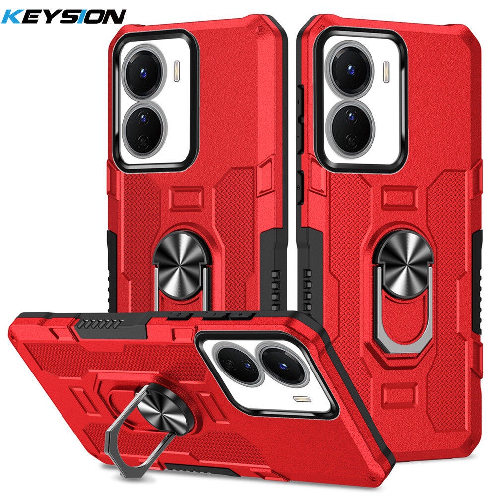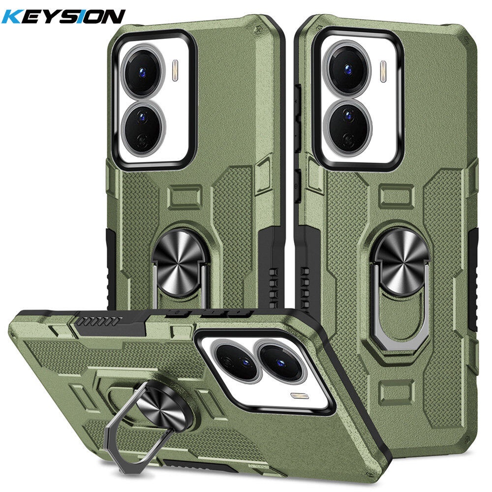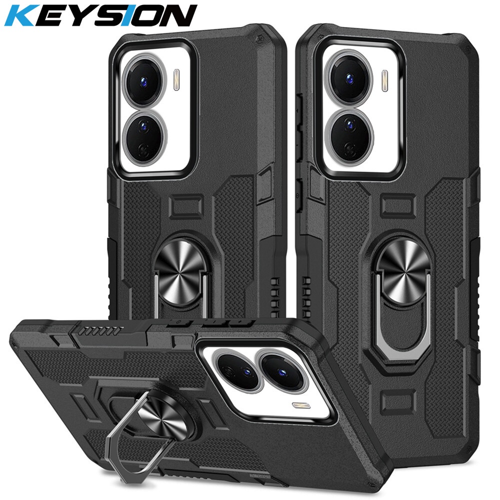 KEYSION Shockproof Armor Case for VIVO Y16 Y15S Y15A Y15C Y01 Silicone+PC Metal Ring Stand Phone Back Cover for VIVO Y02S Y02