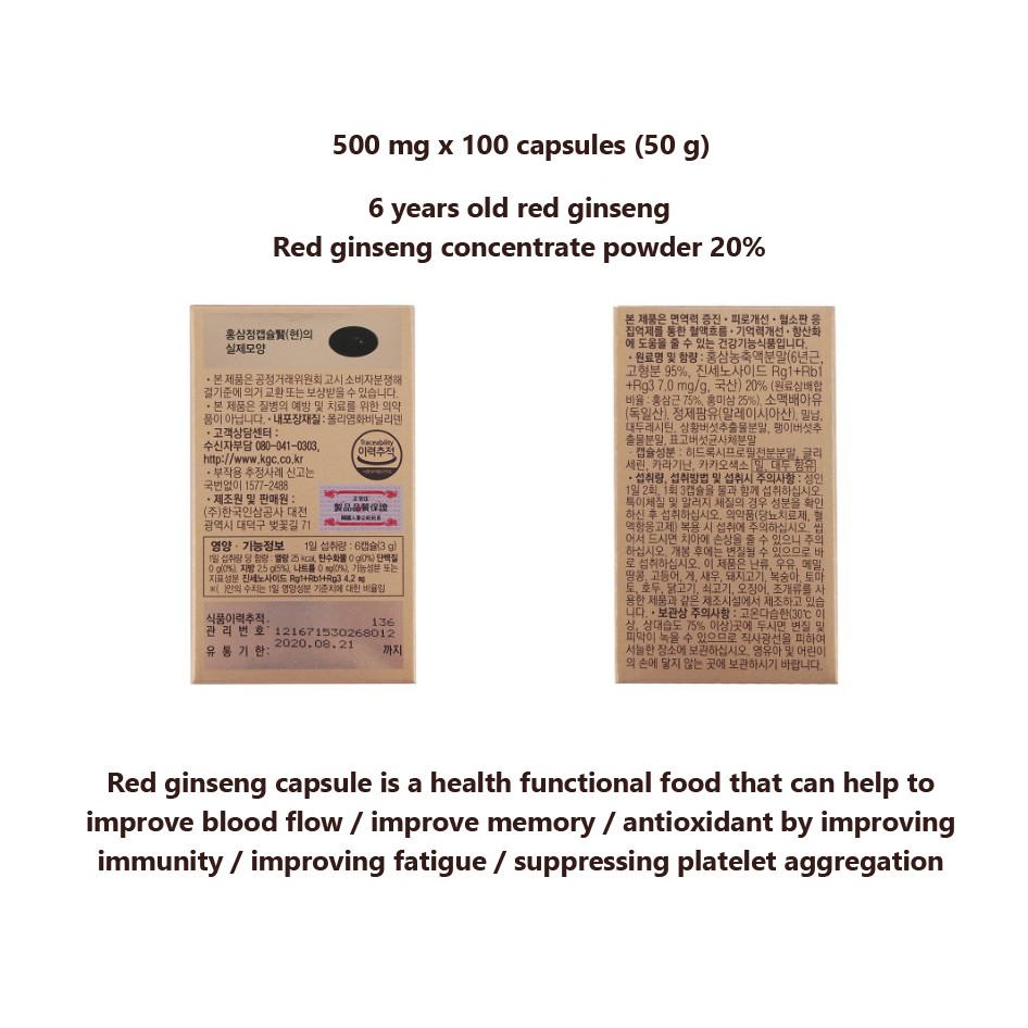 KGC Korean Red Ginseng Extract Capsule 500mg x 100 / 6-Year-Old Ginseng