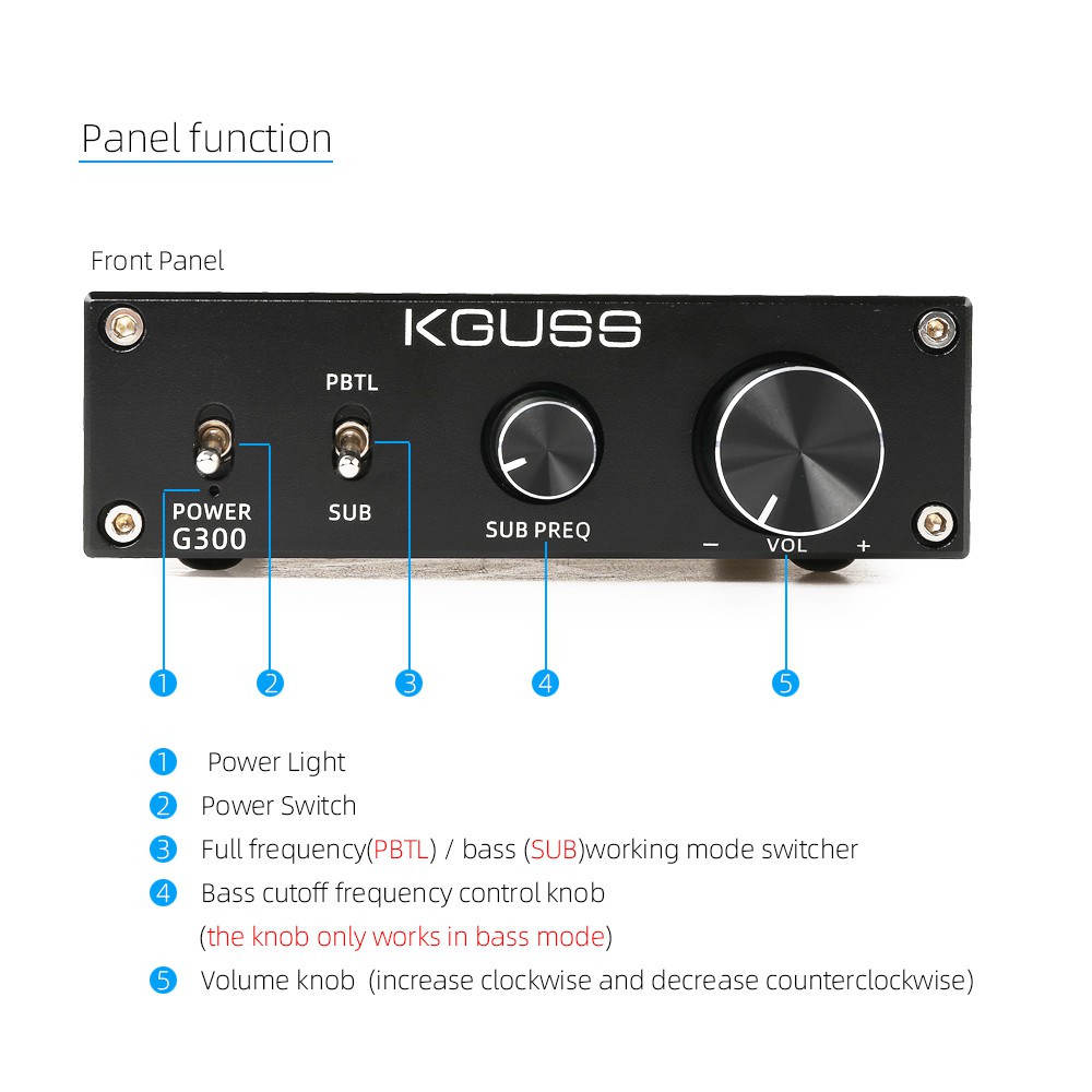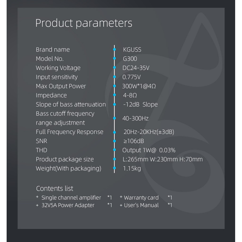 KGUSS G300 HIFI Class D Subwoofer audio Amplifier 300W AMP Bass Treble Adjust Can be connected to active/passive subwoofers Passive Speaker