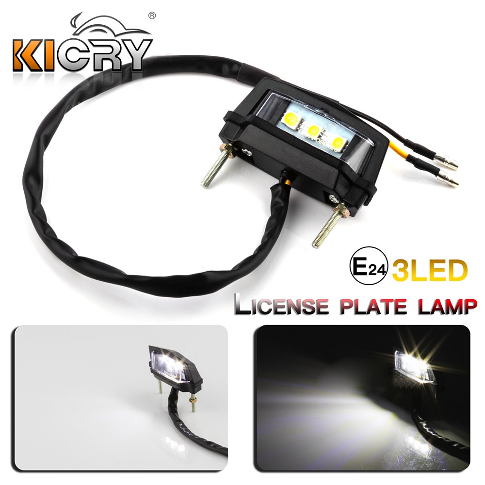 KICRY 3 LED License Plate Light 6k 12V Universal Motorcycle License Plate Light LED Rear Brake Tail Light Lamp MIO I 125 Mxi125 Msi125 CLICK V2 mio sporty Nmax v2 sniper 150/155 xrm 125 Z800 Raider150 LC135 Y15ZR Y16ZR z250 z400 ninja250/400 zx4r DUKE