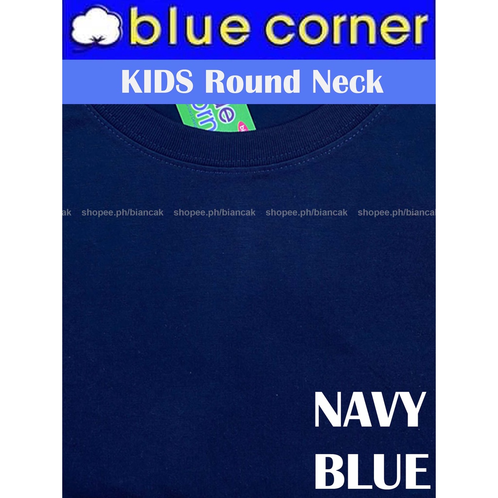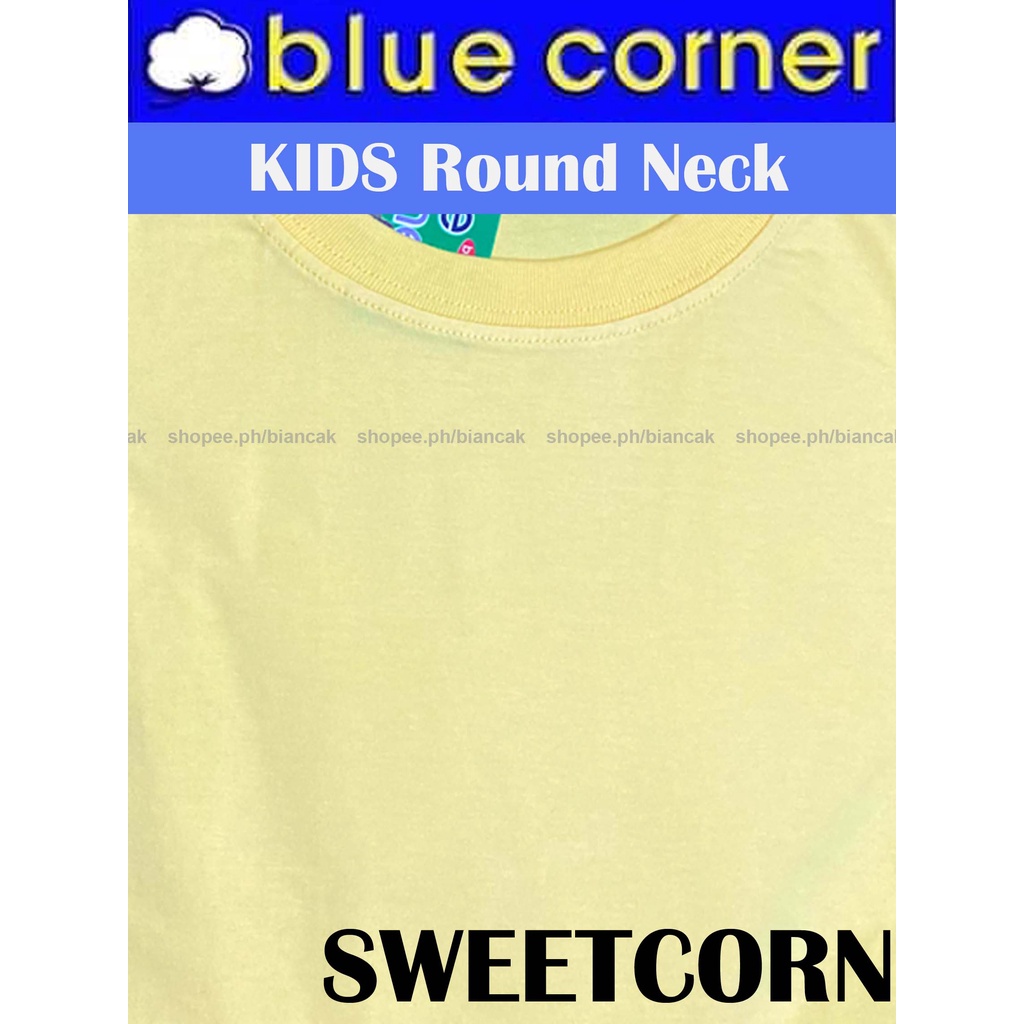 KIDS BLUE CORNER ROUND NECK TSHIRT SIZE XL 2XL GIRL BOY WHITE BLACK GRAY RED BLUE YELLOW PINK BROWN