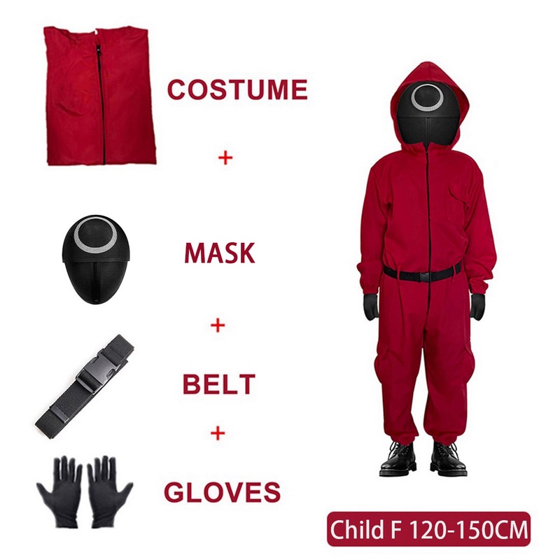 KIDS COSPLAY Squid Game Jumpsuit with Belt and Golves Cosplay Jacket Hoodie Halloween Outfit