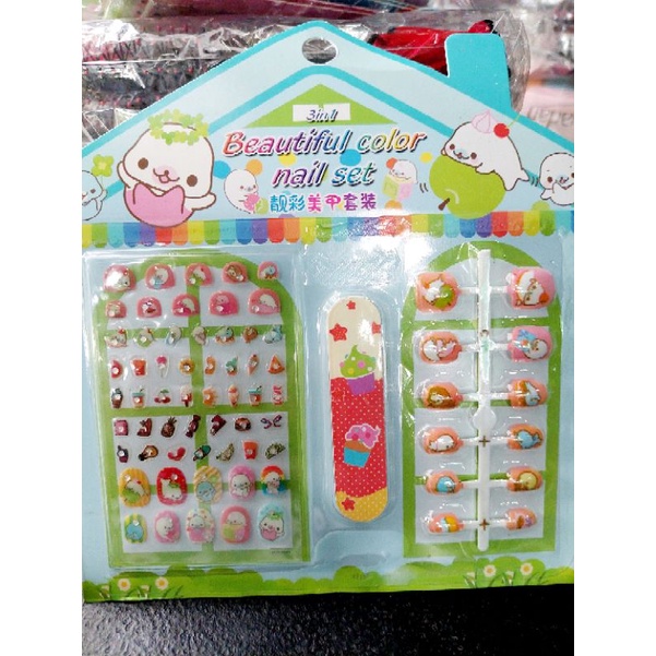 KIDS NAILS PRESS ON 3n1 ididikit nalang sa kuko Beautiful Character designs Fake Nails fakenails kit