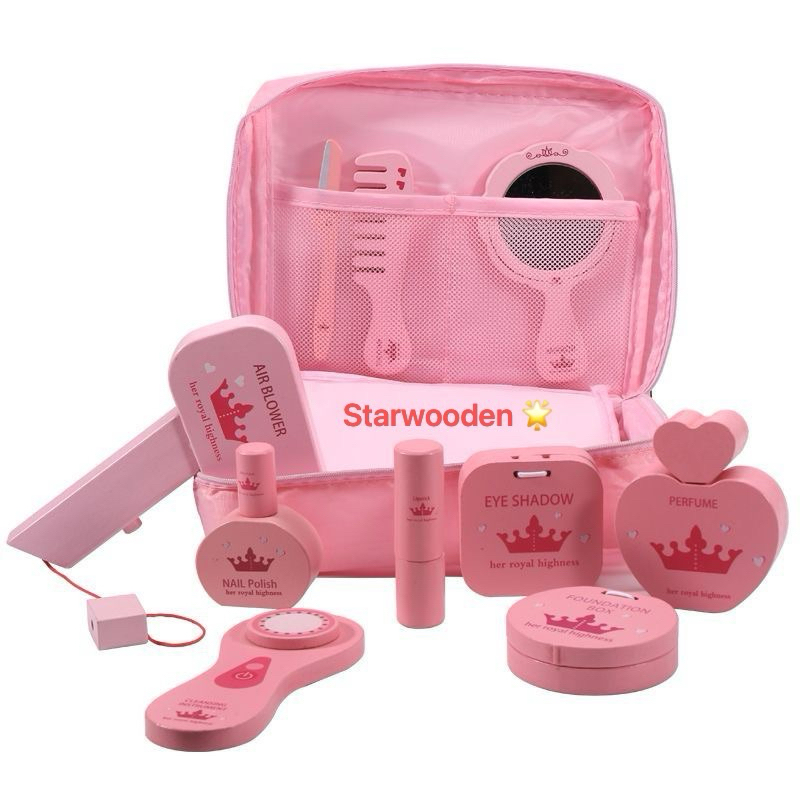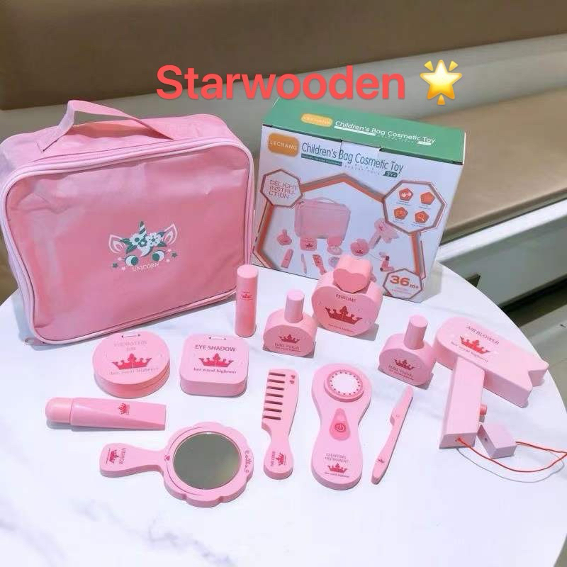 KIDS Pink Make Up Wooden Set Toy With Bag Kids Cosmetic Pretend Play house dressing girl princess
