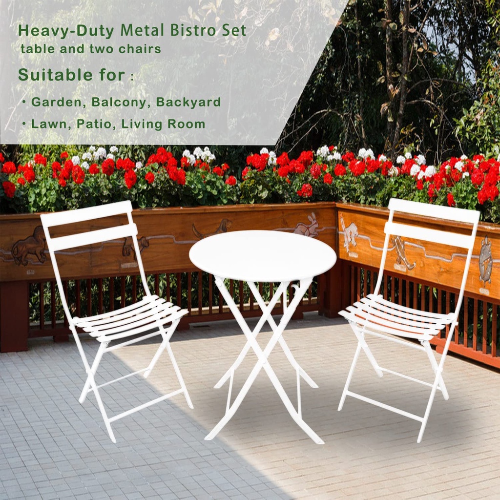 KIMDELIN Patio Premium Steel Patio Bistro Set, Folding Outdoor Patio Furniture Sets, 3 Piece Patio Set of Foldable Patio Table and Chairs