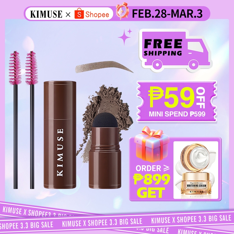 KIMUSE One Step Eyebrow Stamp Shaping Kit - Brow Powder Stamp Makeup with 10 Reusable Eyebrow Stencils Eyebrow Razor and Eyebrow Pen Brushes, Long Lasting Buildable Eyebrow Makeup