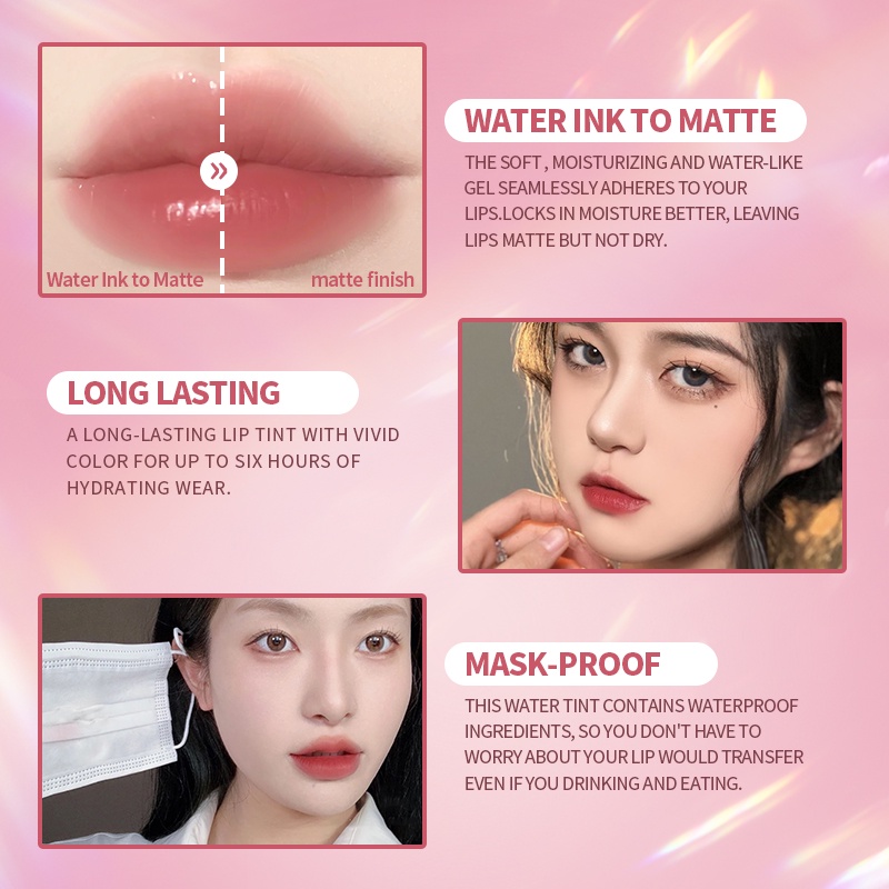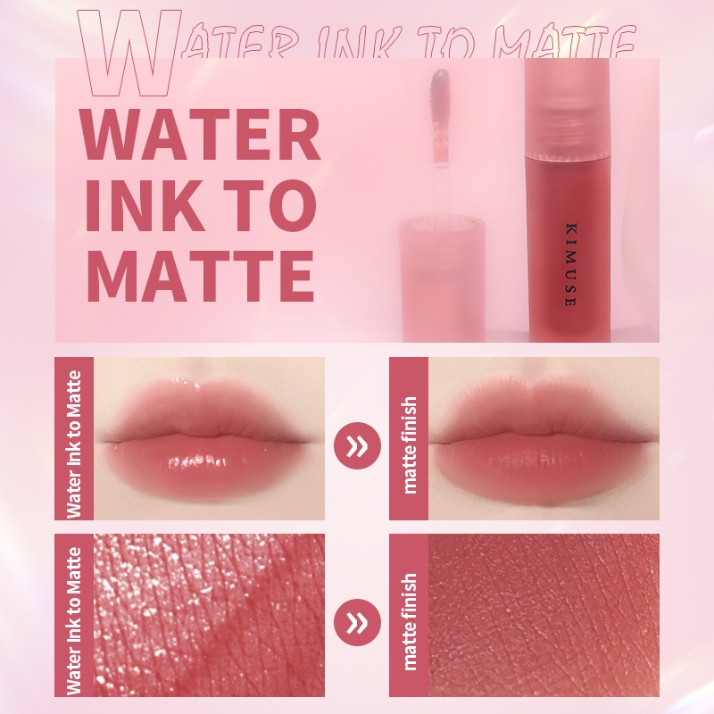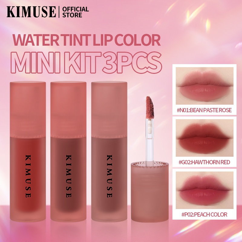KIMUSE Water Tint Lip Set Long Wearing Waterproof Matte Liquid Lip Gloss Lipstick Set 3PCS