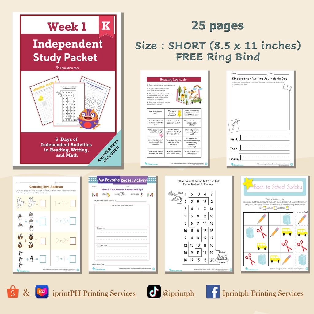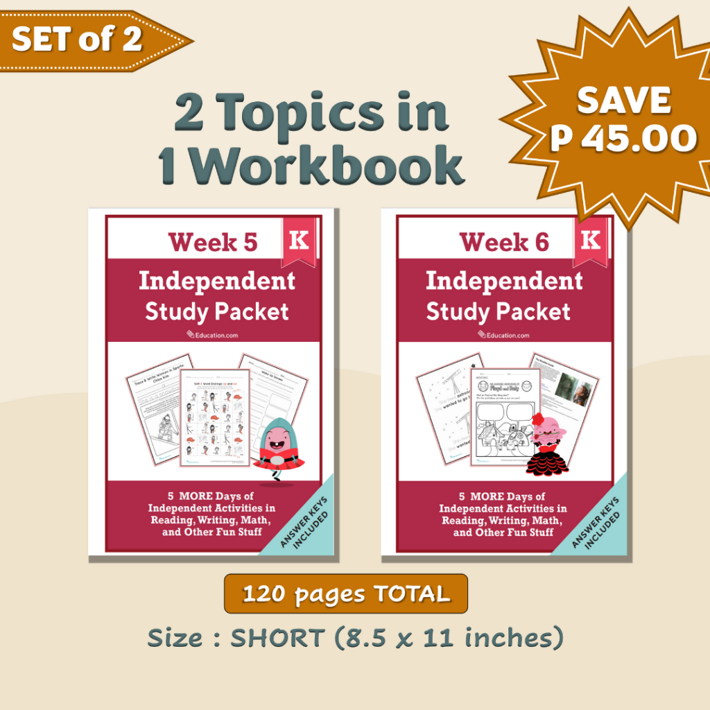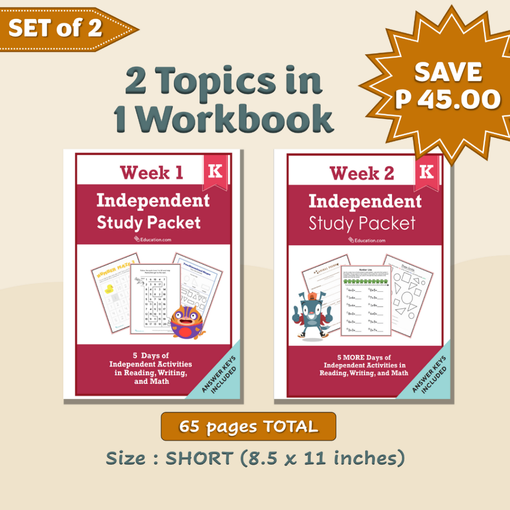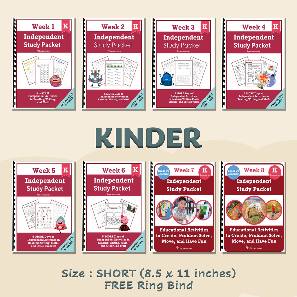 KINDERGARTEN Independent Study Packet (Worksheets / Workbooks)